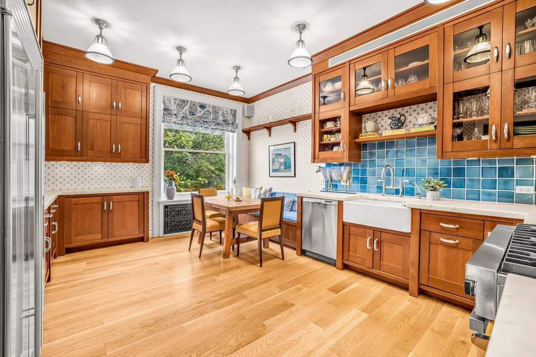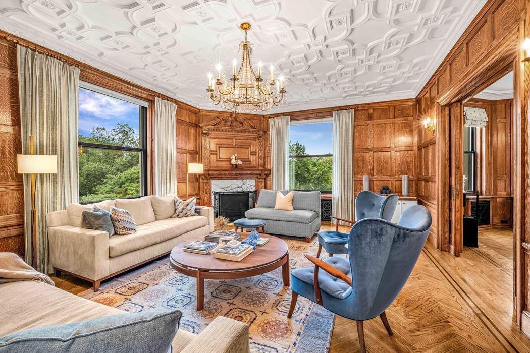 This grandly proportioned 9-room home includes 5 bedrooms and 4 bathrooms, with a flexible layout ideal for both gracious entertaining and comfortable living. The corner living room opens seamlessly into a glorious formal dining room, while a den/music room offers a versatile space for gatherings. The chef’s eat-in kitchen features top-tier appliances and a charming breakfast nook with park views. A spacious primary suite includes its own decorative fireplace, park views, and a luxurious en-suite bath. Central air and an in-unit laundry room add to the home’s modern comforts.