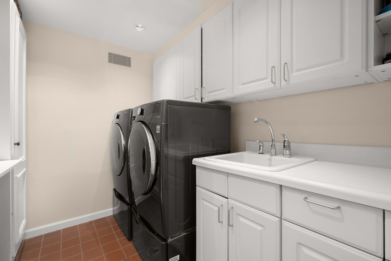 The upper levels of the residence are devoted to private quarters. Each bedroom is thoughtfully designed with its own ensuite bath and generous closet space, ensuring comfort and privacy for family and guests alike. A flexible home office easily converts to a fifth bedroom, allowing the layout to adapt to modern needs.
