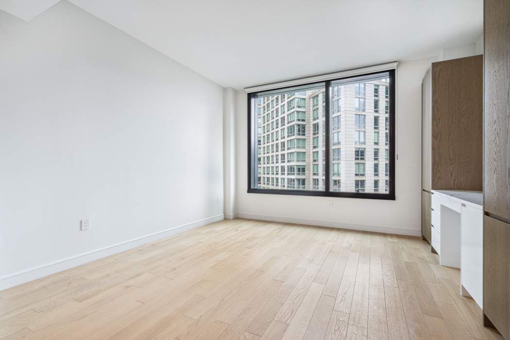Studio residence designed by Lemay+Escobar. Apartment 6F is flooded with sunlight from the southwestern exposure. The custom kitchen features custom made white cabinetry, top-of-line appliances including Bosch refrigerator, dishwasher, induction range, stain and heat-resistant quartz countertops, and an under-mount deep sink. The bathroom features polished porcelain floors, a custom millwork vanity and Neorest Automatic toilet. Additional apartment features are soaring 9’9” ceilings, floor-to-ceiling windows, white oak engineered wood floors and a Bosch washer and dryer.