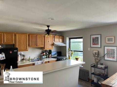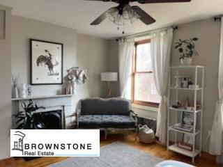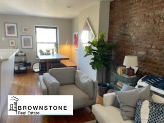 This traditional top-floor, floor-through apartment in a charming townhouse offers an open kitchen, dining/living room, and large bedroom. There are hardwood floors throughout and good closet space.