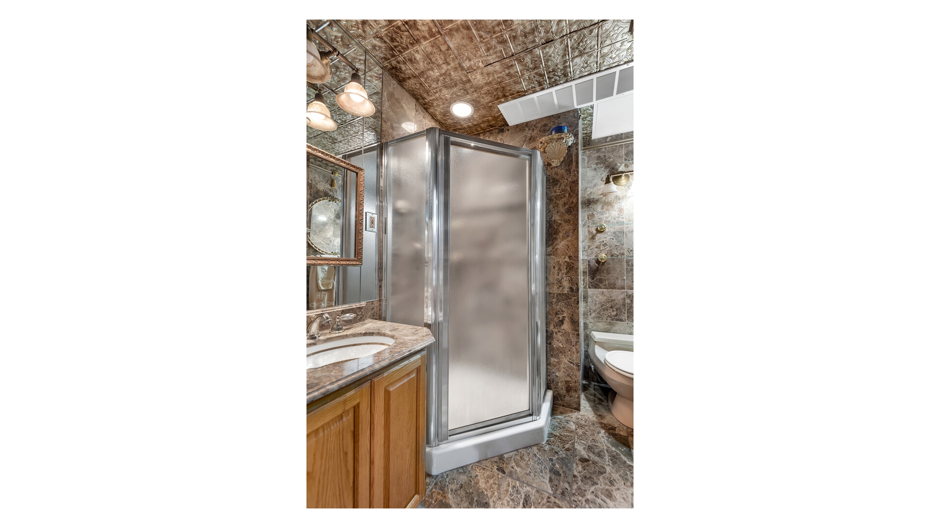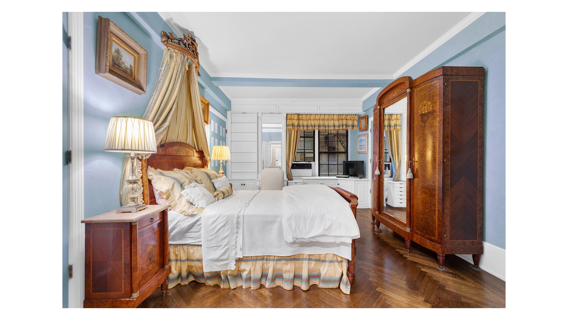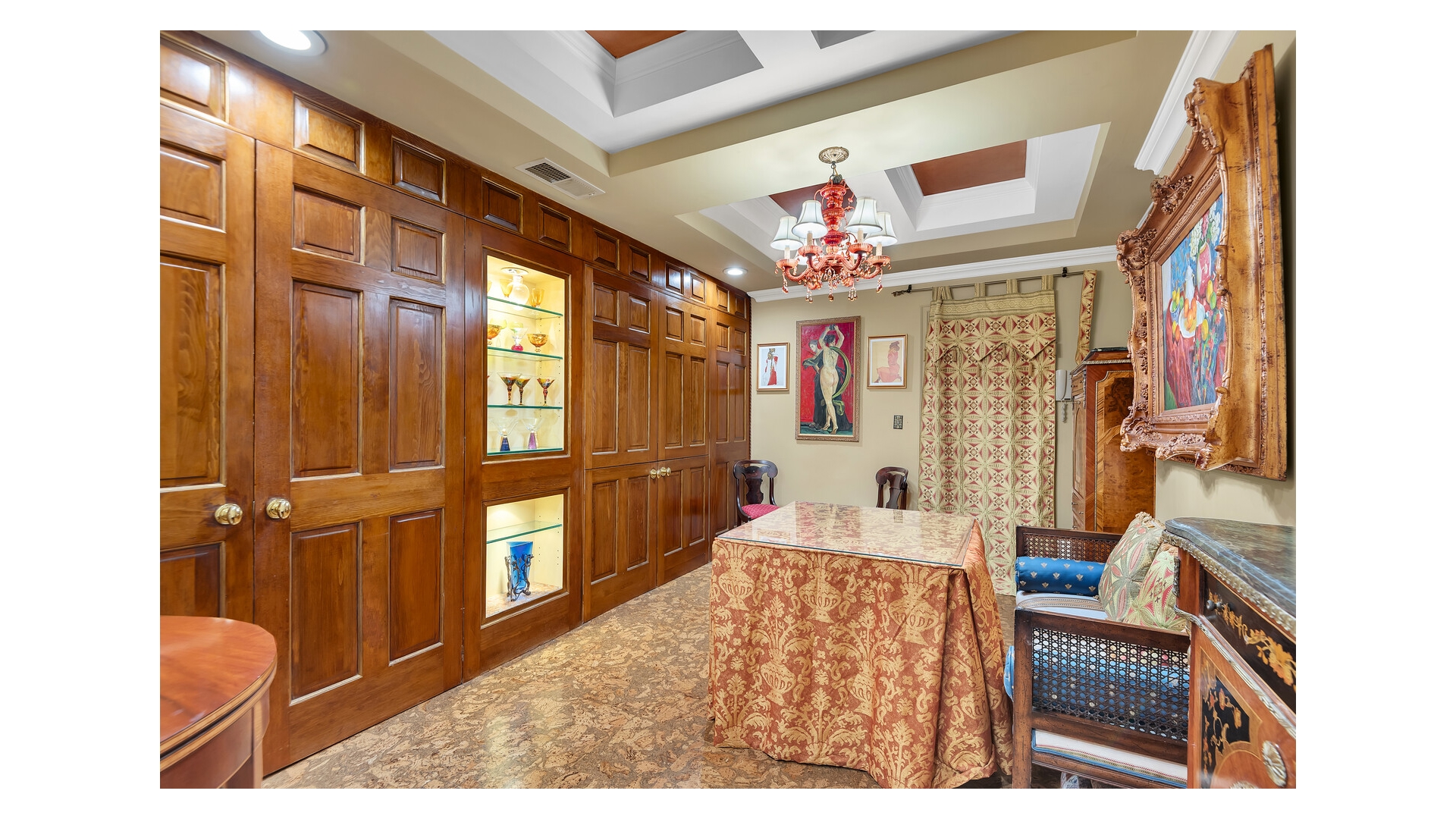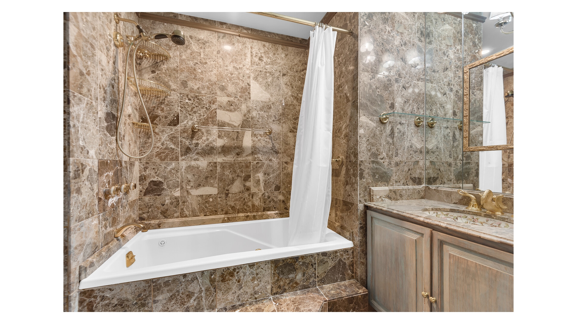 Never wait for the elevator again, just enter through the elegant marble lobby right into your fabulous new home! With great scale and flow, this one bedroom, two bath home is ideal for gracious living and entertaining. Prewar features include high beamed ceilings, beautiful herringbone oak floors and a fabulous decorative fireplace. The peaceful bedroom has great storage space (including built-in storage and desk area) and easily accommodates a king sized bed and oversized furniture. The opulent en suite bath features luxury Sherle Wagner fixtures, an oversized spa tub and marble galore. The second bathroom is similarly fitted and includes a corner shower for those pesky overnight guests. The separate kitchen has tons of cabinet space, stainless appliances, stone countertops and a glass block window and mosaic tile floors and backsplash provide a whimsical midcentury modern touch. The large foyer with abundant built-in storage serves as an ideal dining space. Central air, too! On top of that, you will enjoy easy access to the building's common garden down the hall, which is nicely landscaped and furnished with lounges and BBQs for your relaxation.