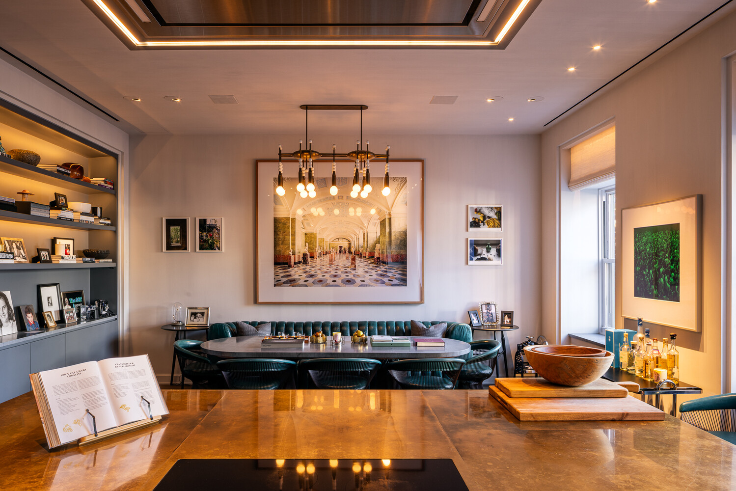 - Artful new lighting fixtures accentuate architectural details and artwork, transforming the space into a gallery-like haven.
