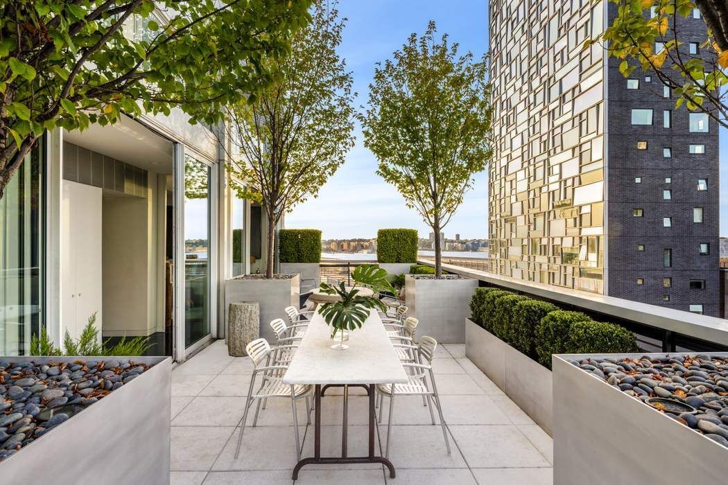 Located on a prime block in the heart of West Chelsea’s gallery district, this Triplex penthouse at the Metal Shutter Houses offers more than 3,300 square feet of exquisitely finished interiors and nearly 2,000 square feet of landscaped terraces with breathtaking skyline and river views from every level.