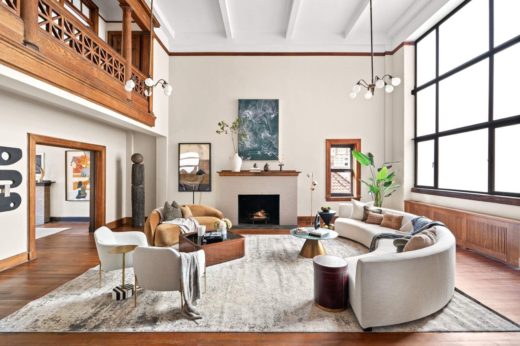 Offered for the first time in half a century, Residence 7/8B is one of the rare B-line southwest-corner duplexes at 257 West 86th Street. Spanning nearly 2,800 square feet, this legacy home combines dramatic scale, preserved craftsmanship, and three luminous exposures—a unique opportunity for a discerning buyer to create a landmark-quality residence on the Upper West Side. The centerpiece is a double-height living room crowned by a 20-foot ceiling and anchored by a 14-foot window that bathes the interior in even north light. The window’s nine etched-glass panes are currently being replaced with new ultra-clear low-lead glass. Overlooking the living room are a pair of original galleries with wood balustrades, carved in the cross-braced lattice motif that recurs throughout the building. The formal dining room, kitchen, and bedrooms face West 86th Street to the south and the neighboring church to the west. The home is currently configured as three to four bedrooms with a formal dining room and two full bathrooms; the building’s duplexes typically support three-bathroom layouts. Private laundry is located off the kitchen, and new washer/dryer installations are permitted. Adding further versatility, the sale includes a private, windowed room on the building’s ground floor—originally a staff room located just off the lobby—now perfectly suited as a secure personal archive or family collection space. 257 West 86th Street is a boutique cooperative, designed in 1906–07 by Pollard & Steinam, architects of the Hotel des Artistes and other landmark studio residences. At 257, they blended Beaux-Arts scale with Arts & Crafts detailing: soaring double-height living rooms framed by classical entablature and simplified, geometric ornament—a fusion unique to the pre-WWI era in New York architecture. The building offers a 24/7 lobby attendant/elevator operator, new gym, landscaped roof deck, basement laundry, deeded storage for every unit, bike storage, and a full-time resident manager. This is a rare chance to create a lasting pre-war home with scale, light, and architectural character, at an attractively compelling value.