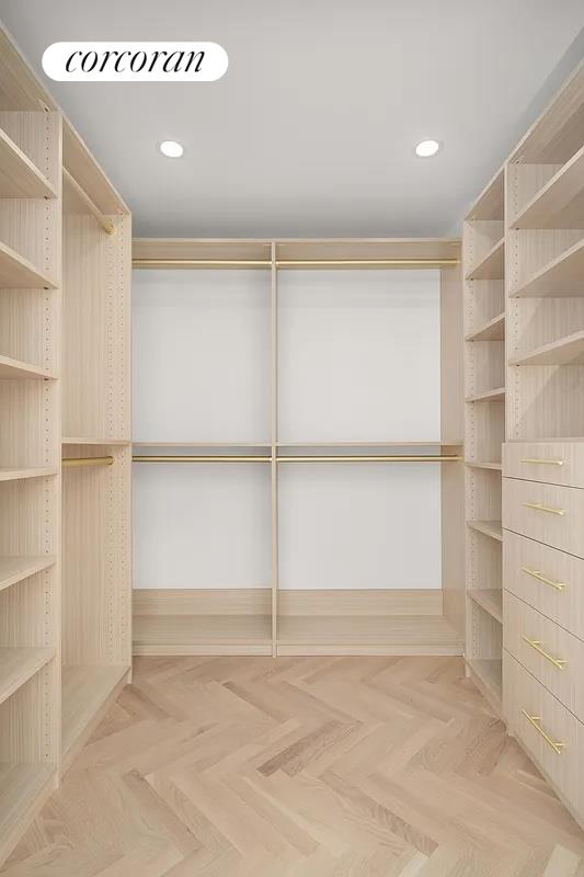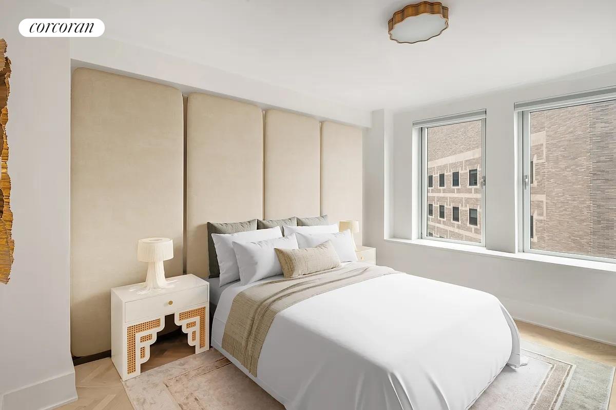 The oversized primary suite is a private sanctuary, offering sweeping Central Park views, a serene dressing/seating area, two custom walk-in closets, and a lavish en suite bathroom. This spa-like retreat features a soaking tub, a glass-enclosed shower, and double sinks. Two additional generously sized bedrooms, each with en suite bathrooms and ample closet space, are thoughtfully located in the south wing, ensuring privacy for the primary suite.