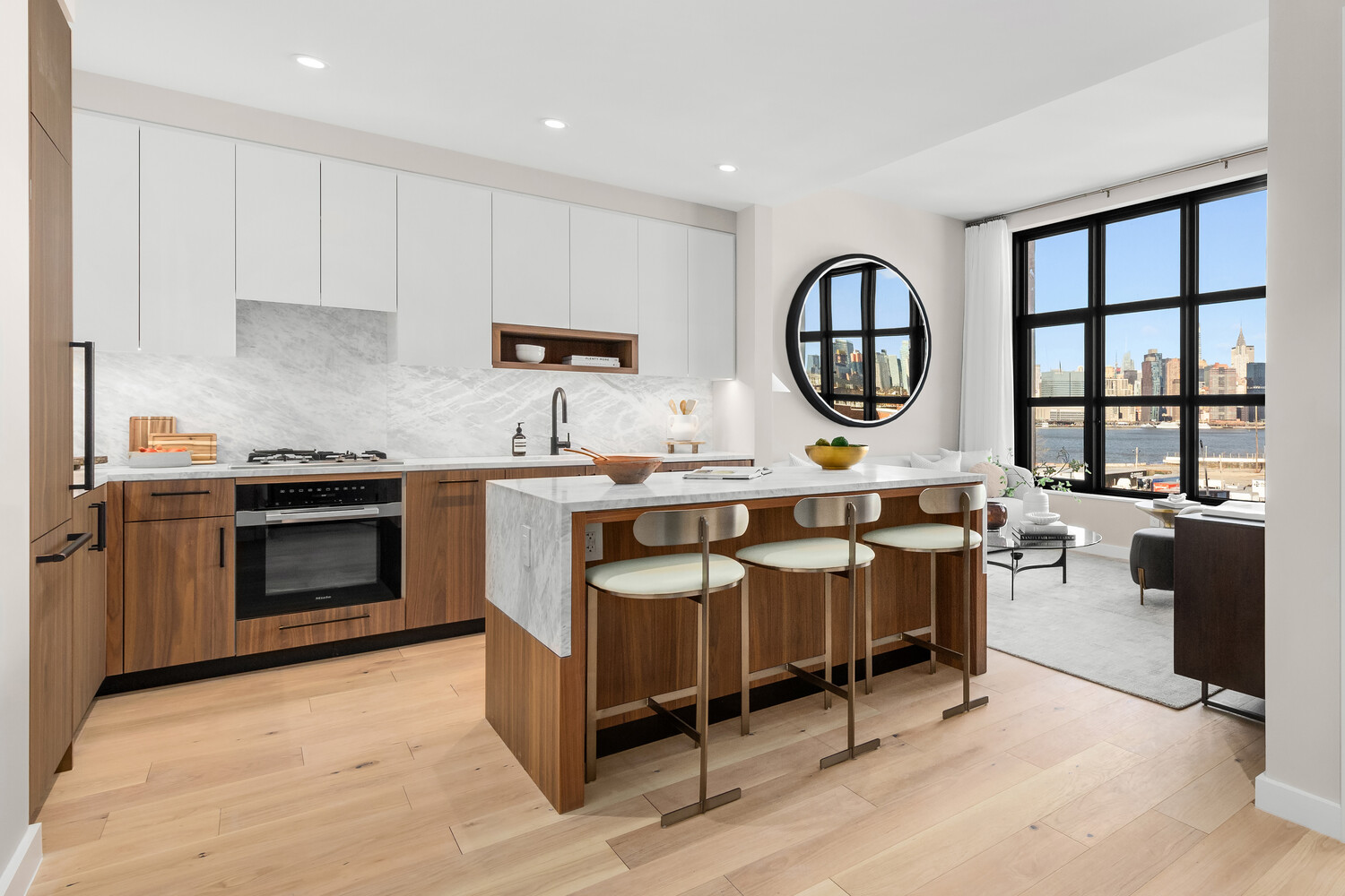 Introducing this brand new 2-bedroom, 2-bathroom condo offering an amenity-rich waterfront lifestyle in one of Brooklyn's trendiest neighborhoods. Interiors are timeless in their design and evoke casual elegance. Airy ceilings and wide plank engineered oak floors frame floor-to-ceiling windows with startling views of the East River and Manhattan skyline. Quiet, energy-efficient multi-zone VRF heating and cooling is paired with a WiFi-enabled Nest thermostat.