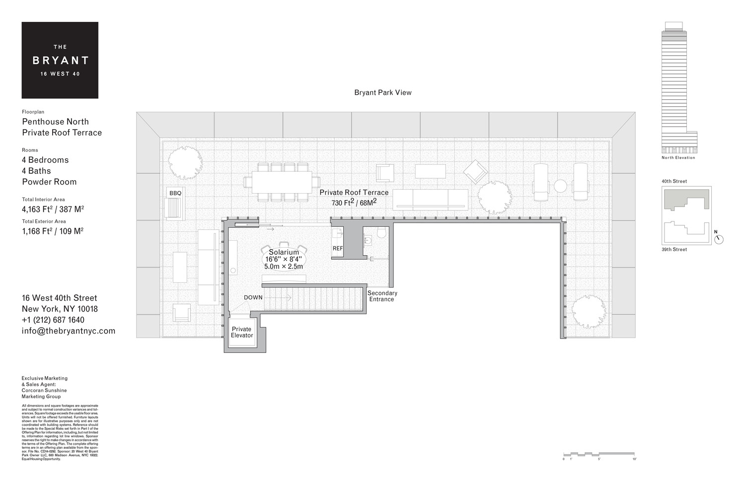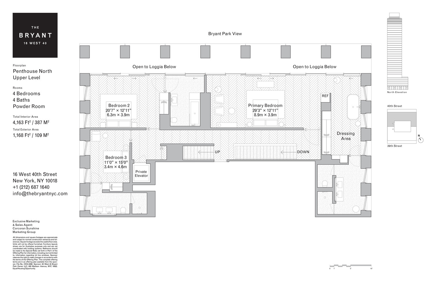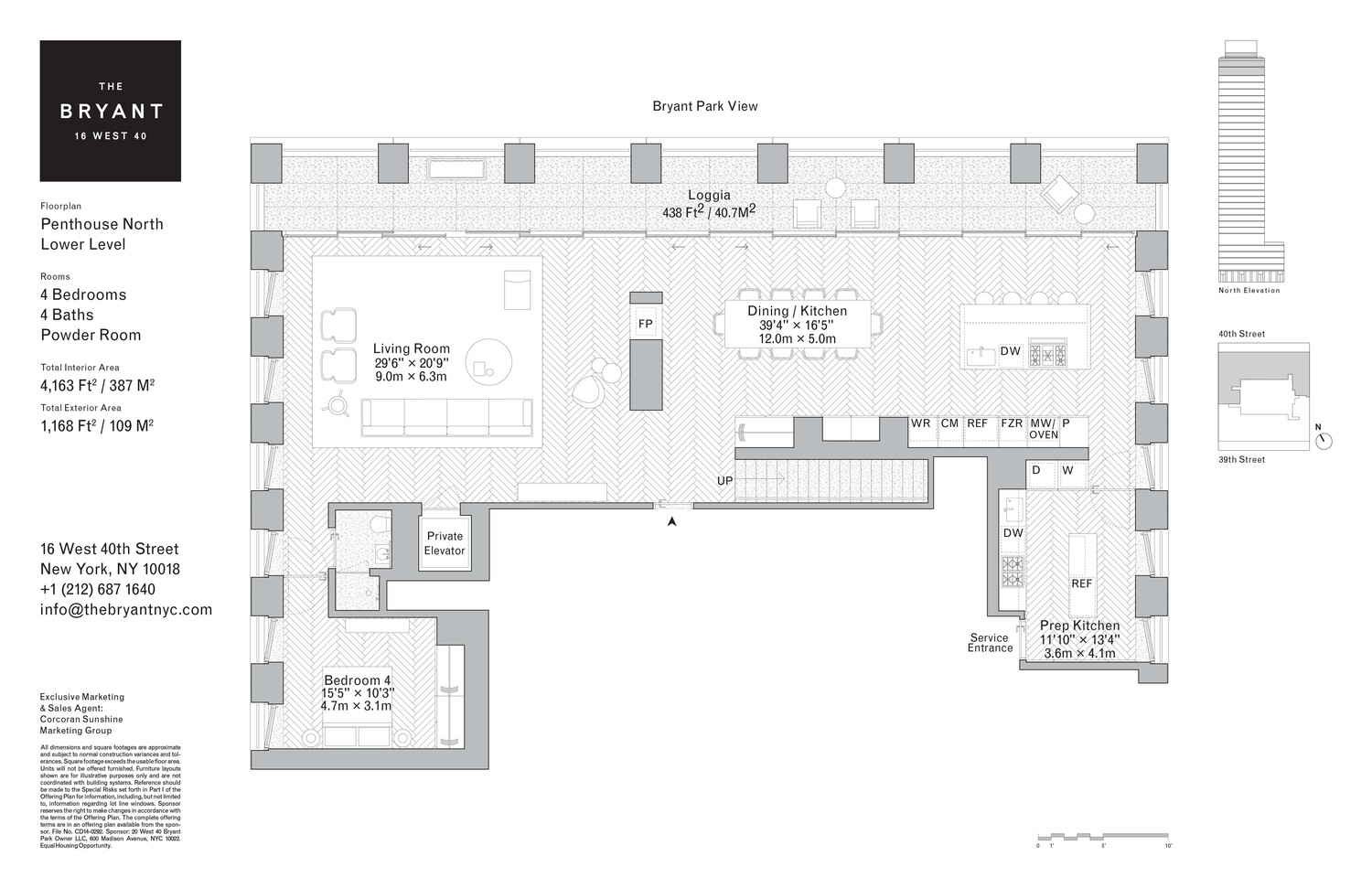 Located high above vibrant Bryant Park in the heart of New York City, Penthouse North is one of just two Penthouses crowning The Bryant, David Chipperfield's new modernist landmark on Bryant Park. Penthouse North is spread over three floors of refined living and entertaining space with a double-height loggia and incomparable views of Bryant Park and the New York City skyline. At 4,163 sq. ft. (387 sq. m.), this 4-bedroom home with private roof terrace offers an expansive floor plan with an abundance of natural light and ultra-luxurious design by Pritzker Prize winning David Chipperfield Architects.