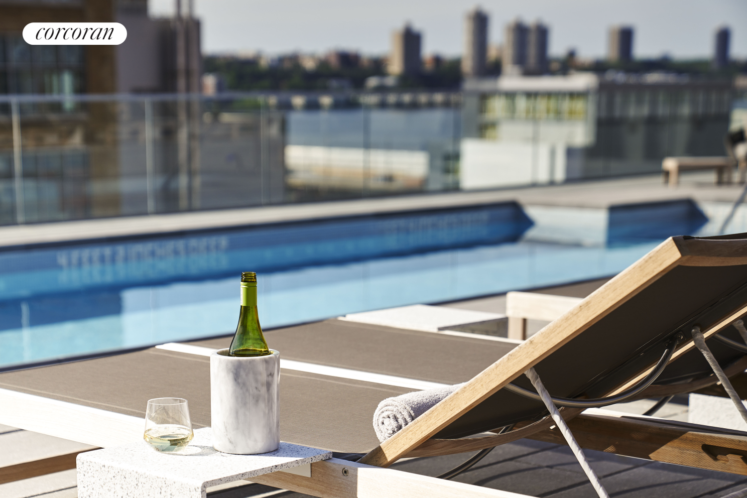 The West Residence Club welcomes you with a beautifully landscaped garden entrance and a 24-hour attended lobby. Residents enjoy over 30,000 square feet of premium amenities at 547 West 47th Street, including a glass-enclosed library with a fireplace, a comfortable lounge, and dedicated co-working spaces. The state-of-the-art indoor/outdoor fitness center-complete with a yoga studio-was curated by The Wright Fit to provide an inspiring environment for wellness. At the rooftop Pool Club, take in sweeping views of the Hudson River and Midtown skyline from the swimming pool, sundeck, outdoor kitchens, dining areas, and lounge spaces.