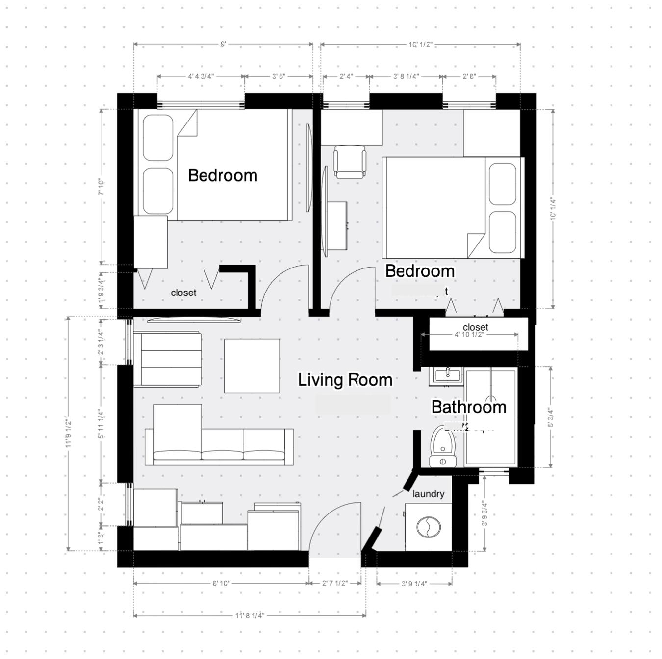 The separate kitchen has full sized appliances w/ microwave and dishwasher. Full Sized laundry in unit
