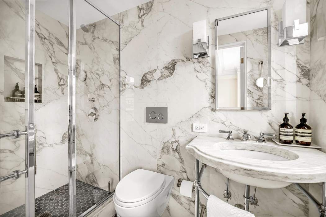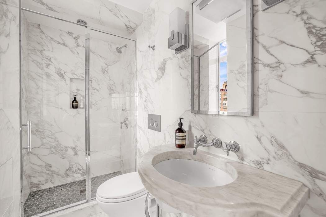 From the kitchen, enjoy Western views to Central Park from oversized new windows. Kitchen features include soapstone counters, two refrigerator/freezers, a Miele dishwasher, garbage disposal, custom white oak cabinetry and island for elegant and efficient entertaining. Adjacent, is a lovely space for semi-formal dining or flexible for other desired uses. Truly multipurpose. A graceful curved staircase leads to the upper level, where two bedrooms with ensuite baths are thoughtfully separated. Each bedroom has abundant direct sunlight and ample custom built-out closet space. The Primary Bedroom enjoys a corner exposure with Park views. The immaculate windowed bathrooms are classic, timeless and elegant with heated flooring and polished nickel hardware. A washer dryer is conveniently located off the hallway. This floor is also accessible via 12th floor elevator landing.
