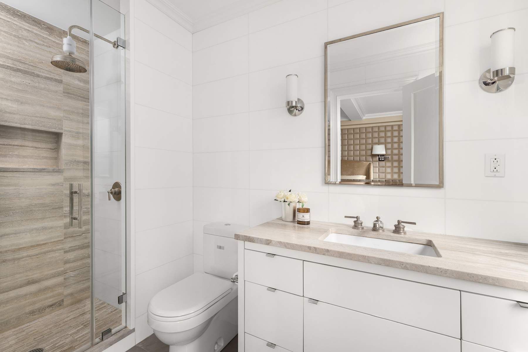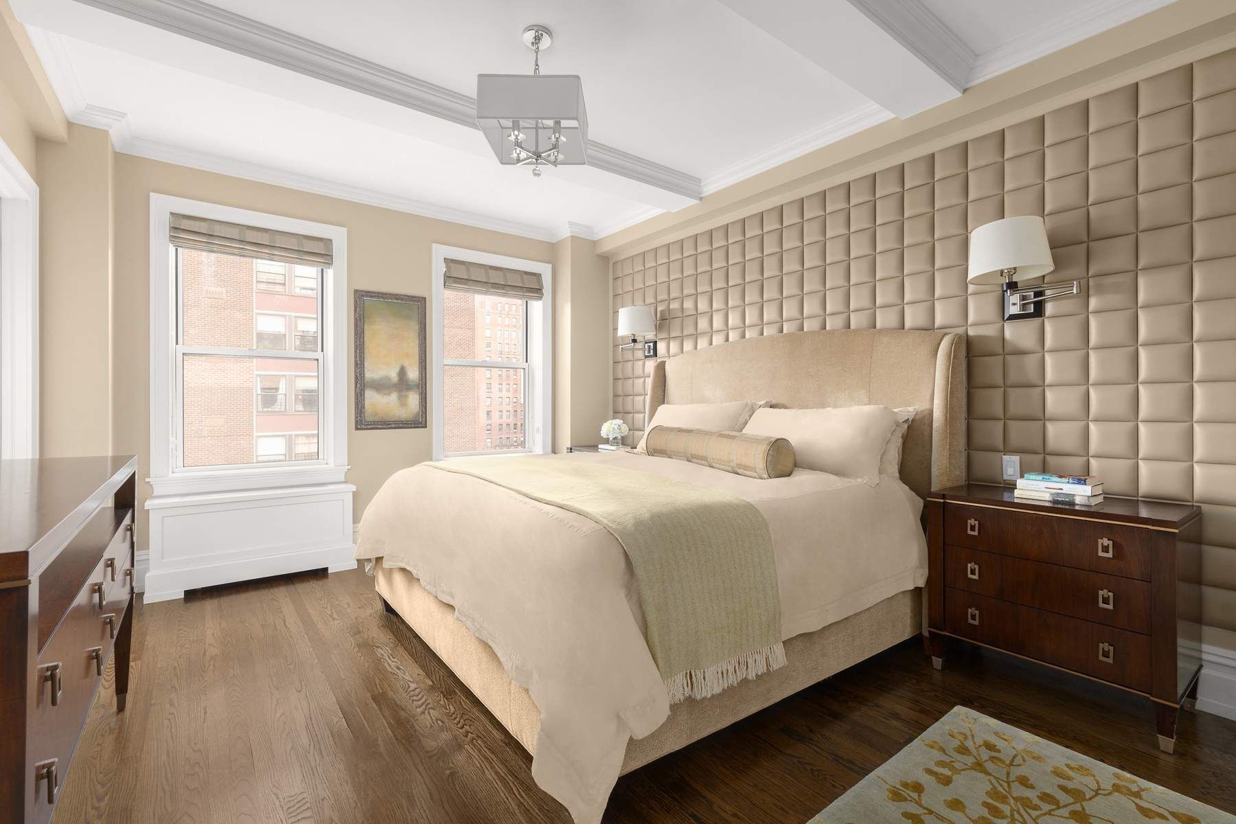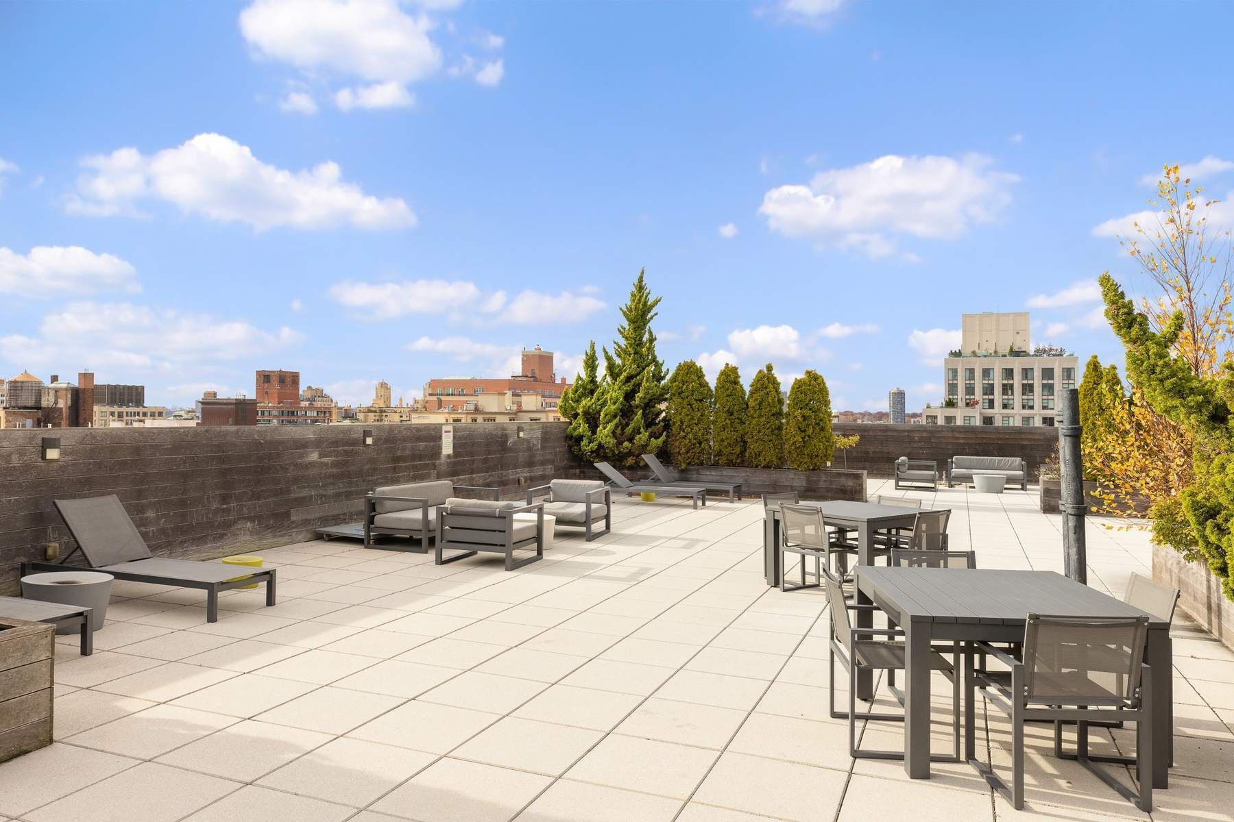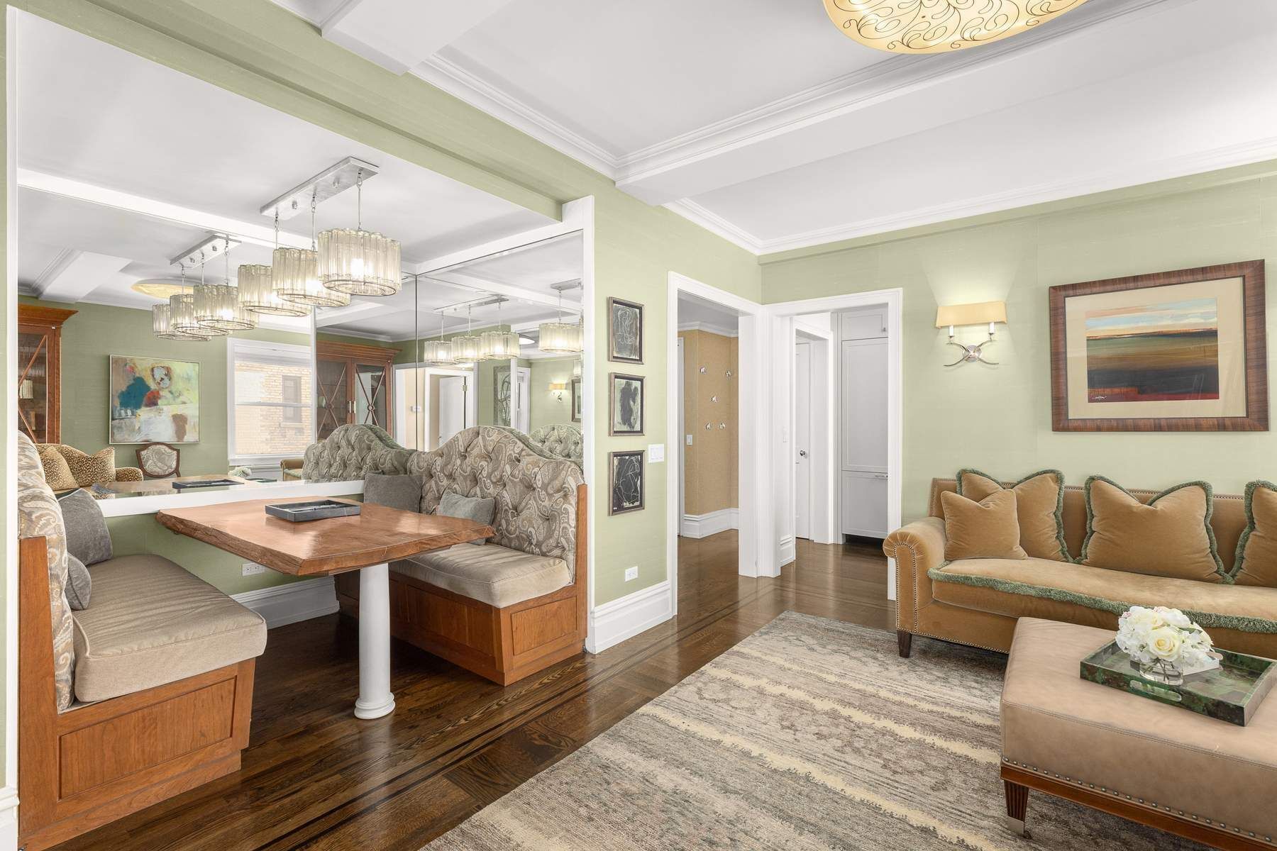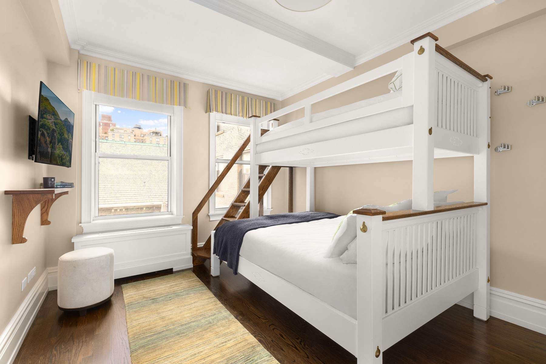 This sun-flooded, south-facing pre-war condominium offers 1,582 SF of mint renovated space, including two bedrooms, two full bathrooms, and a separate home office. High, beamed ceilings, classic moldings, oak floors, large new windows, and central air conditioning create a cohesive blend of pre-war character and modern comfort. The windowed kitchen features white glass countertops, a marble backsplash, abundant storage, and premium appliances including a Bertazzoni gas range, Miele refrigerator, and Fisher & Paykel dishwasher. The plan is open and casual, fitting for today’s lifestyle with a central den and dining area. The south-facing primary includes two closets—one a walk-in—and a windowed en-suite bath with a rain shower. The second bedroom faces north and has an adjacent full bath finished in marble with a deep-soaking tub. A separate home office is a convenient and desirable feature. 165 West 91st Street, The Mirabeau, is a full-service pre-war condo at the corner of 91st Street and Amsterdam Avenue. Built in 1926 and reimagined in 2013 by Kinlin-Rutherfurd Architects, the building offers a landscaped roof deck, fitness room, playroom, bike room, 24-hour doorman, live-in resident manager, handyman and porter. Neighborhood highlights include Barney Greengrass, Whole Foods, dozens of great restaurants and easy access to the 1/2/3 and B/C subway lines—and only two blocks from Central Park. Please note that the monthly real estate taxes shown reflect a 17.5% abatement which applies to ownership as a primary resident. Otherwise the monthly real estate taxes are $1,456 a month.
