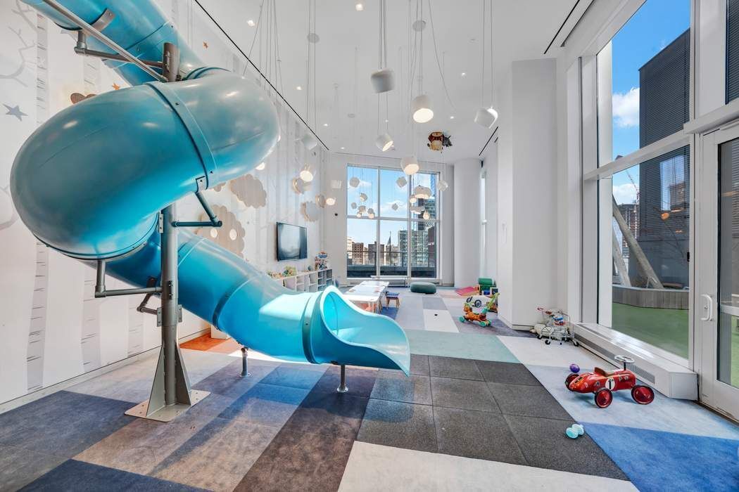 24-hour attended lobby, concierge, package and cold storage, stroller valet, pet spa, bike room, resident lounges, landscaped terrace with grills and firepit, children’s indoor and outdoor play areas, screening and performance room, chef’s kitchen, wine library, study, game room, full fitness center with studios, rock climbing wall, indoor pool, sauna, hot tub, squash/basketball court, and the highest residential rooftop infinity pool in the Western Hemisphere. Professionally managed by Extell Management Services.
