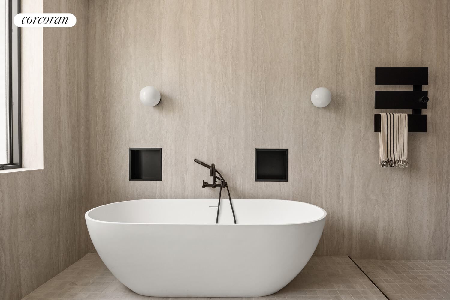 The third floor is home to a stunning primary suite with a private covered terrace, an enormous walk-through closet with automated lighting, and a luxurious en-suite bathroom featuring a spa-style wet room with soaking tub and dual rain showers, a double vanity, a water closet with pocket doors and sink, and two towel warmers.