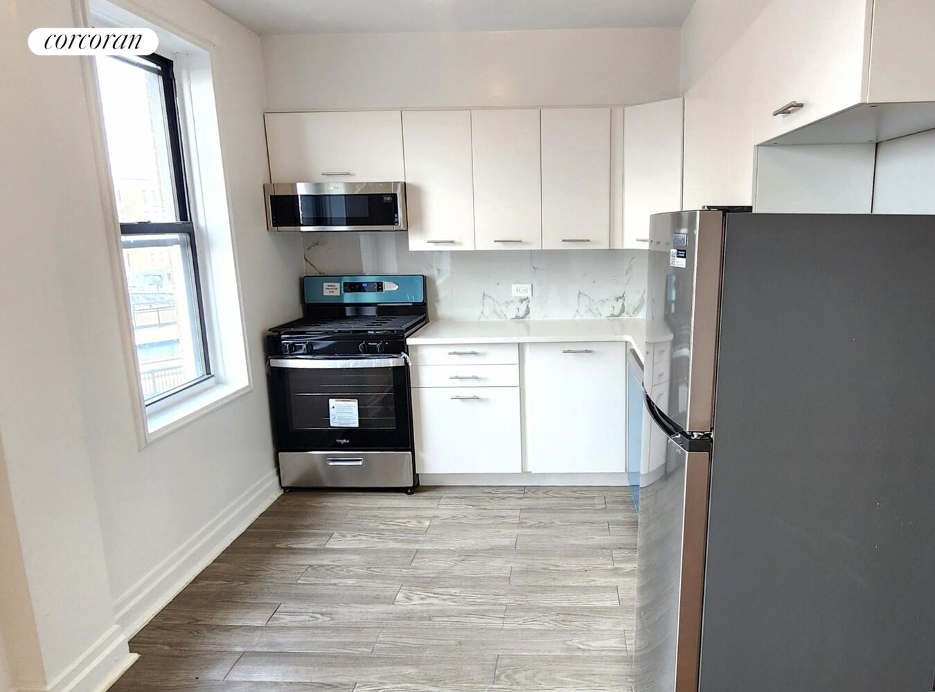Rare Affordable Condo in Pelham Bay. Own and live in this beautifully renovated one-bedroom unit in well maintained elevator building in an ideal location. Enjoy this bright living room with two windows, a coat, and storage closet. Cook in this spacious alcove kitchen with modern renovated kitchen. The stylish cabinetry provides lots of storage in the upper and lower cabinets with easy closing drawers and sleek stone like counter tops. Shiny stainless steel appliance package offers a refrigerator, stove/oven, microwave, and dishwasher. Retreat to your bedroom with a double-sized closet and two windows. Enjoy your renovated bathroom with large wall to wall soft tone tiles, a pedestal sink and soaking tub. Classic hardwood oak floors throughout.
