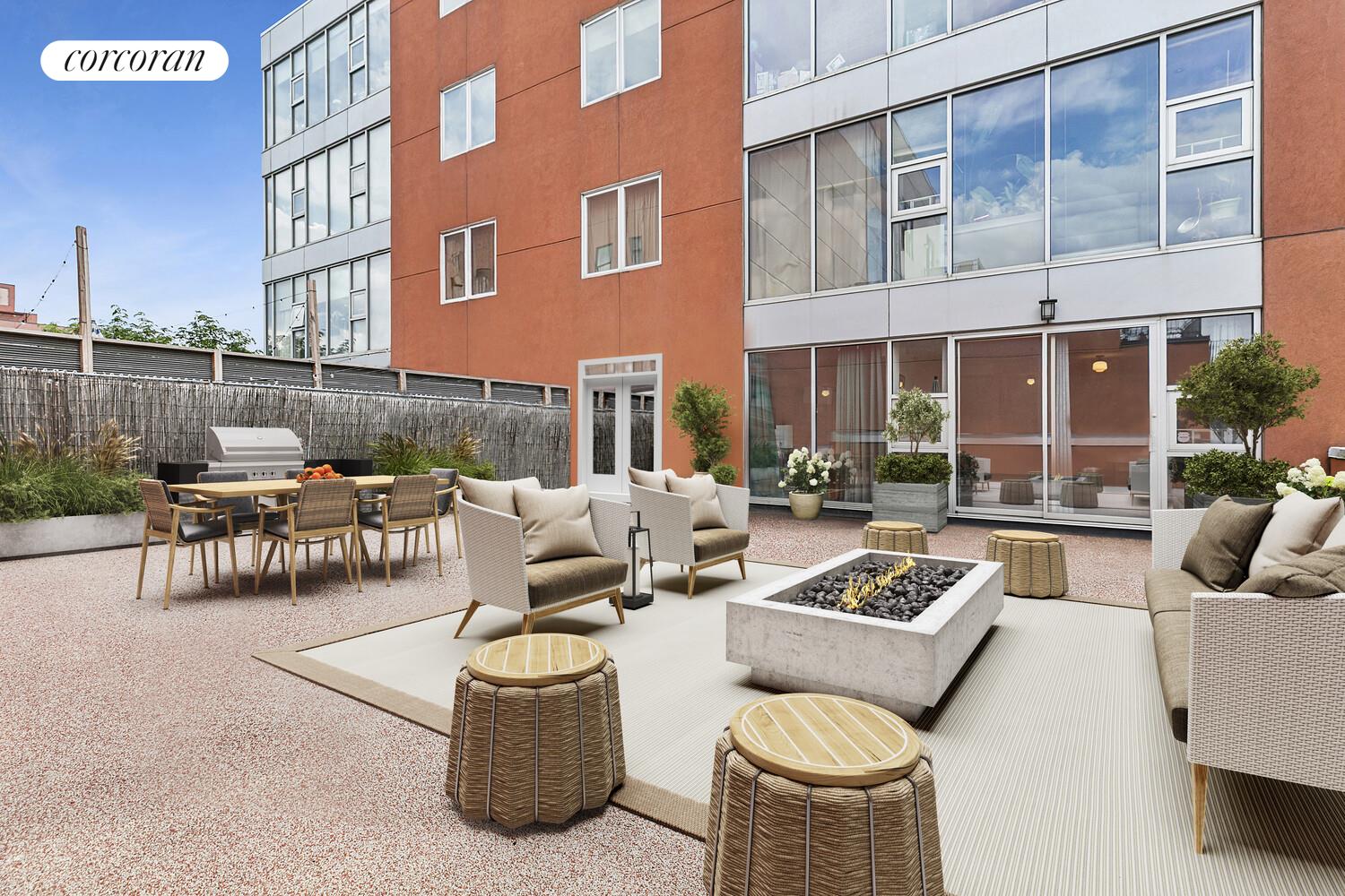 Situated in a low-rise boutique building, the condo ensures a tranquil living experience while being conveniently close to the heart of the action. Enjoy a BBQ on the common roof deck as you watch the sunset over the skylines of Manhattan, downtown Brooklyn and the World Trade Center. The building features a virtual doorman, video intercom, secure bike storage in basement.