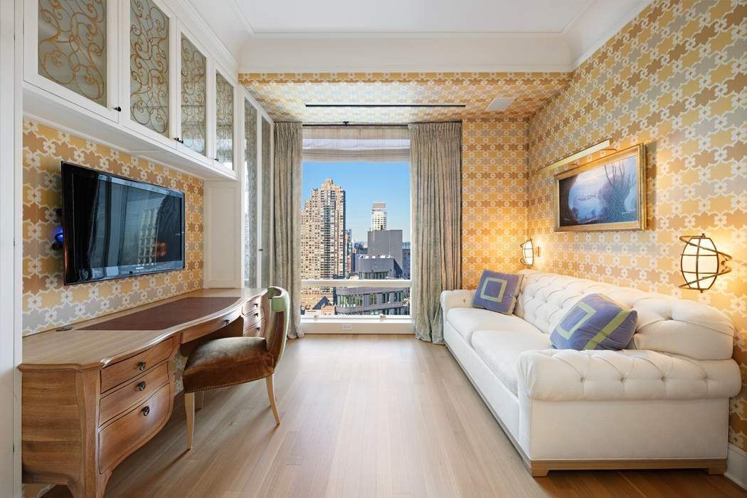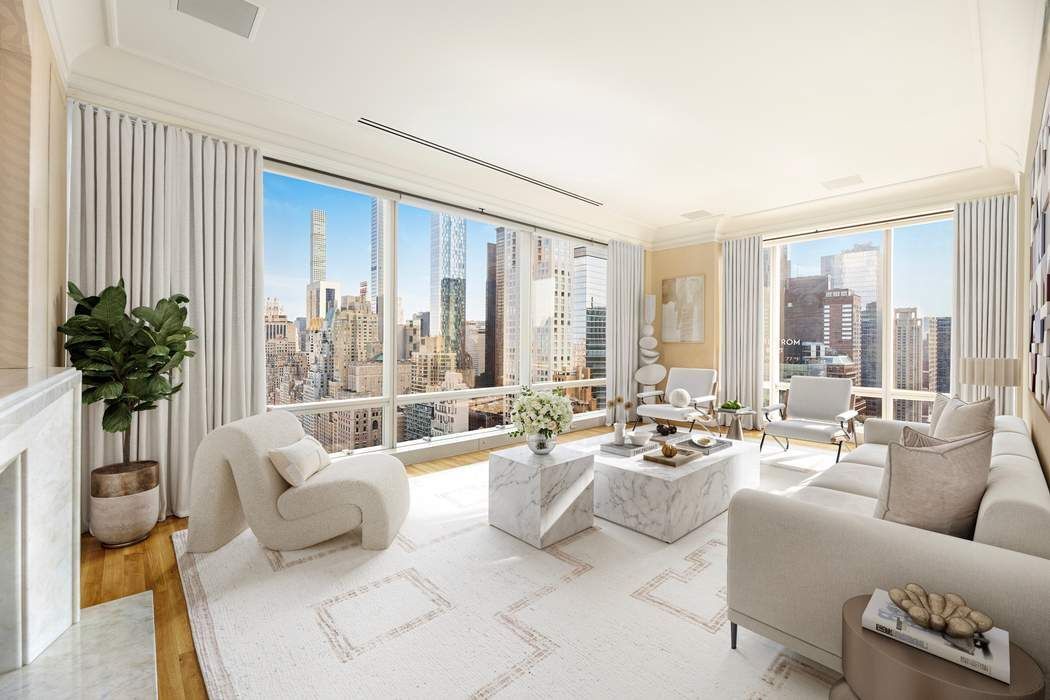 Perched high above Central Park at One Central Park West, this sun flooded corner residence has been meticulously upgraded to the highest standard and boasts expansive vistas of Central Park as it unfolds amidst the dramatic backdrop of the East and West Side skyline. Spanning 2,165 square feet, the Robert Couturier designed three-bedroom apartment enjoys truly phenomenal views from the 34th floor and is a glorious haven above the city, gorgeously appointed in every way. Upon entry, the gracious Gallery leads to a corner Living Room with Central Park and open cityscape views. Adjacent is a wonderful Dining Area. The Library with ensuite Bath also has sunny Southern views and doubles as Third Bedroom. A coat closet and powder room are conveniently situated off the Gallery. The corner Primary Bedroom enjoys lots of southern light and has a luxurious marble Bath and a fabulous Walk-In Closet. Additionally, there is another corner Bedroom with ensuite Bath and very ample closets. Completing the layout, the fully equipped chef’s Kitchen boasts top of the line appliances and wonderful city views. Throughout, custom millwork and flooring, opulent finishes, hand-selected marble/stone in all bathrooms, and central air conditioning further distinguish this quintessential New York residence. One Central Park West offers extraordinary services and amenities. Also known as Trump International Hotel and Tower, the building’s lower levels are a five-star hotel, and the building’s upper levels – from the 17th to 52nd floors are a white glove condominium with a separate, fully attended lobby. Top services include a 24-hour doorman and concierge, and valet parking at the onsite garage. Housekeeping and laundry services are available, as is room service from the acclaimed on-site restaurants Nougatine and Jean Georges. The massive, state-of-the-art fitness center has been newly refurbished and includes a 55’ heated indoor Swimming Pool and spa services. The building also boasts a convenient business center with private conference rooms, and a landscaped roof terrace. Please note that there is an ongoing monthly assessment of $715.65 through June, 2032.