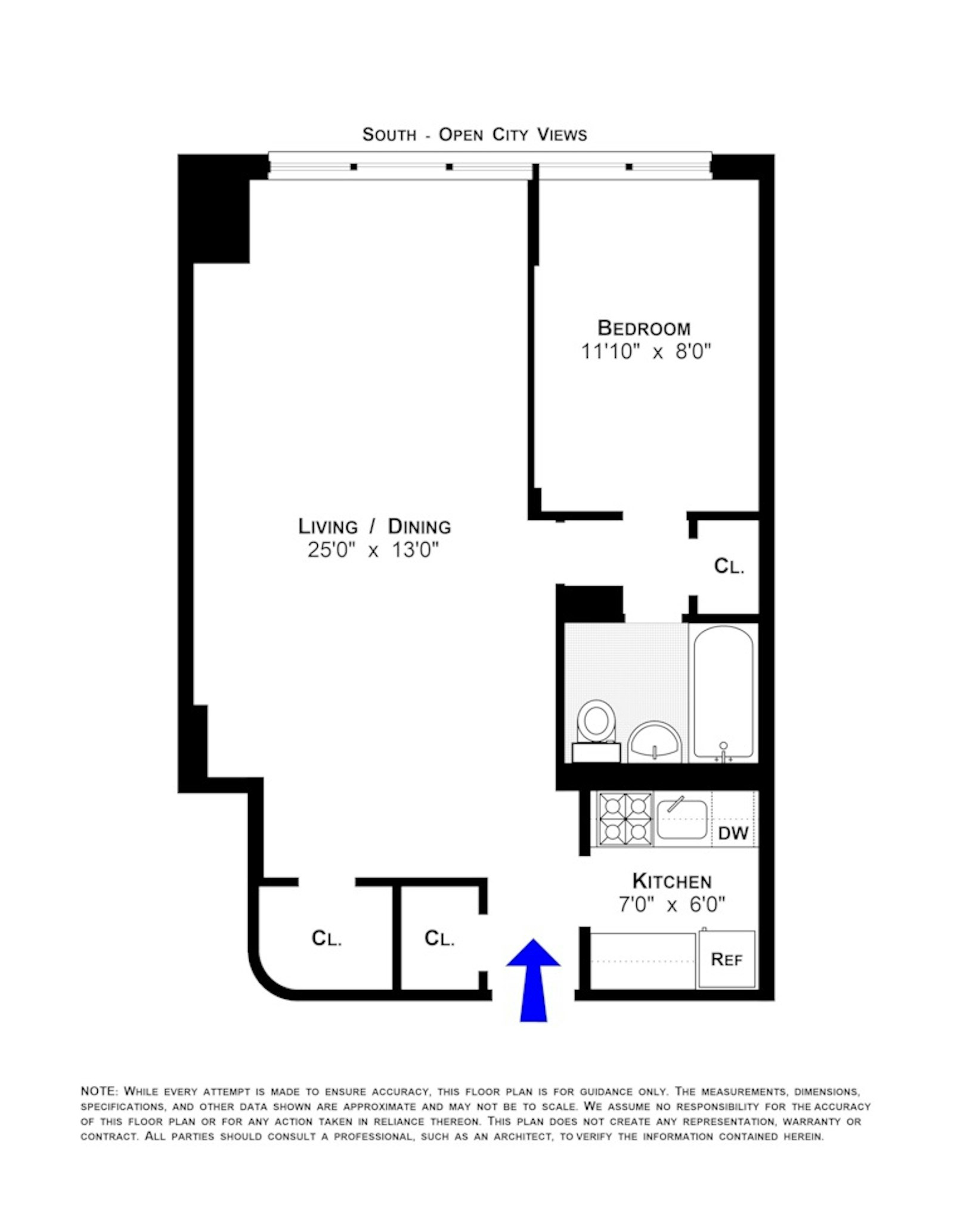 Light and airy, this inviting one-bedroom captivates you with its sprawling 25-foot living space, oversized windows, and abundance of southern light. City and sky views from the 15th floor offer the perfect vantage point to take in the vibrant energy of the city from the comfort of your home.