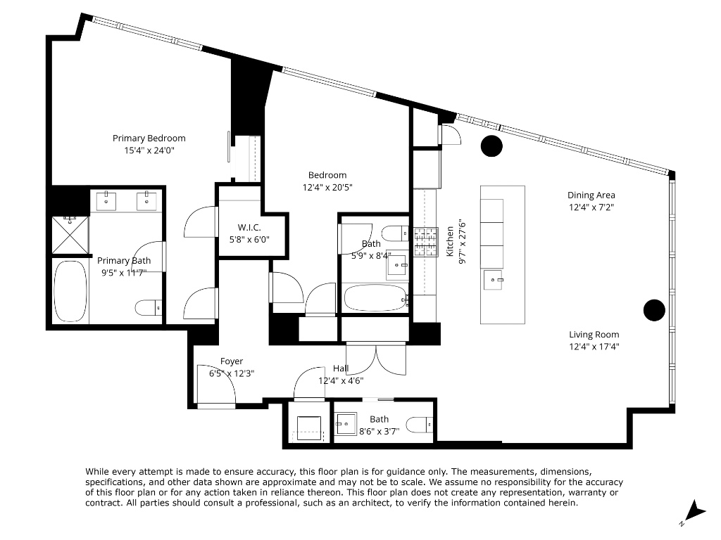Upon entering, youll be greeted by floor-to-ceiling windows that flood the open living spaces with natural light, creating a seamless flow between the rooms. The breathtaking Eastern and Southern exposures offer stunning views of the cityscape, whether its during the day or night.