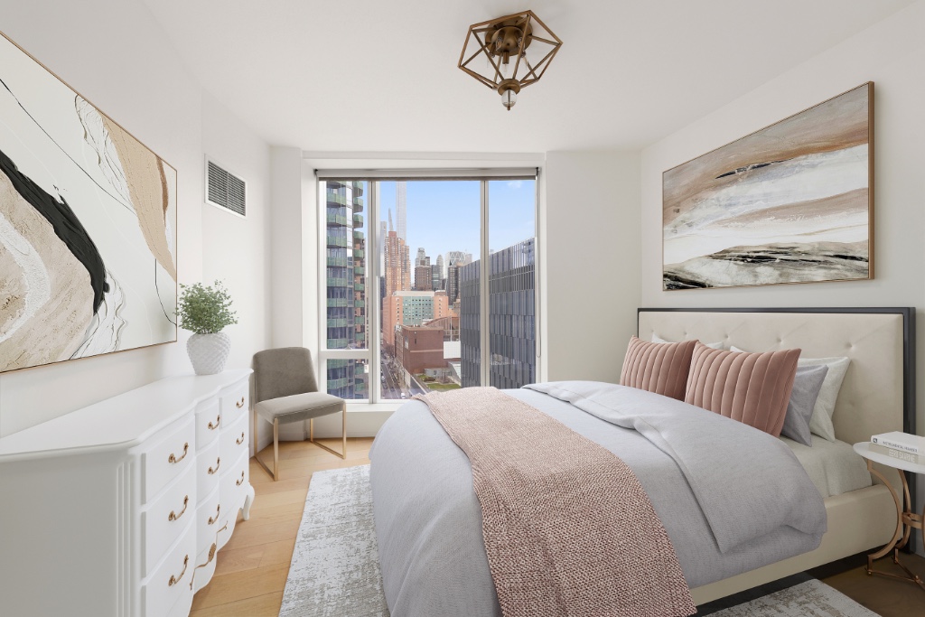 Nestled in a pristine corner, this two-bedroom, two-and-a-half-bathroom apartment offers breathtaking views of the river and iconic midtown buildings. The apartment is enveloped in dramatic floor-to-ceiling glass, creating an open and airy atmosphere. Its all part of the full-service, amenity-rich lifestyle that One West End provides.