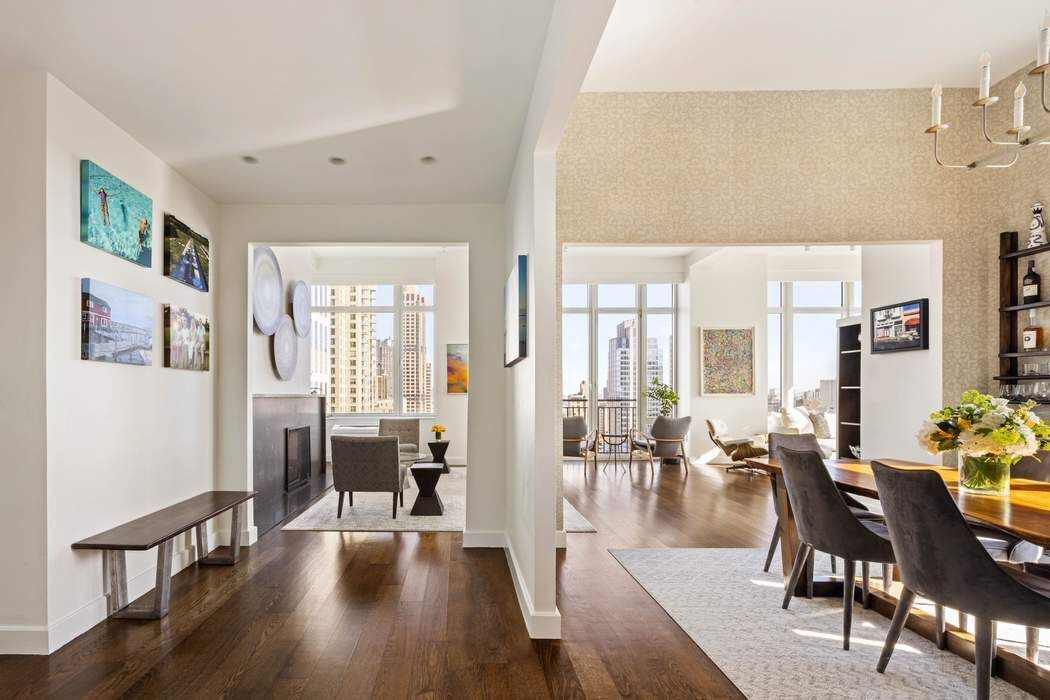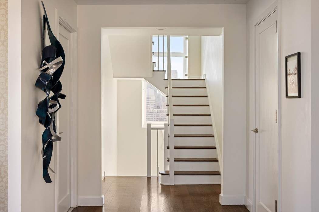 Welcome home to this stunning light-filled sanctuary, a magnificent 3,562 square foot duplex penthouse with an additional 1,000 square foot private rooftop terrace ideally situated in the Arcadia, one of the Upper East Side's premier full-service condominiums. Defined by sundrenched and expansive interior spaces, soaring 12-foot ceilings, and dramatic skyline views to the north, south, and east, this sophisticated 5-bedroom, 5.5-bathroom home in the sky has been masterfully designed both for versatile everyday living and elegant entertaining. Enter from the semi-private elevator landing into the loft-like living and dining spaces bathed in extraordinary natural light through walls of showstopping floor-to-ceiling windows. The double corner living room with sweeping views and a stately gas fireplace allows for multiple seating arrangements and flows wonderfully into the large dining room with East River views. Adjacent to the dining room and connected through a wet bar/coffee station, the recently renovated kitchen is flooded with light all day long. Certain to delight the most discerning chef, the kitchen is fitted with custom cabinetry, stone countertops, a center island with seating for four, and premium appliances including Sub-Zero refrigerator and wine cooler, Miele dishwasher, three wall-mounted Wolf ovens (including a steam convection oven and microwave), and Wolf cooktop with vented hood. A south-facing library/media room with ensuite bathroom (which could easily function as a 5th bedroom) and a lovely powder room for guests complete the upper level. Perched above the penthouse is a spectacular private rooftop terrace, featuring breathtaking panoramic vistas to the north and east. With multiple seating and dining areas, irrigation, and an impressive outdoor kitchen with gas grill and three refrigerators, this urban oasis accommodates both intimate gatherings and grand entertaining for up to 100 guests. One flight down the striking architectural staircase are the private quarters, housing four sun-filled bedrooms and a laundry room with a large LG washer and vented dryer. The primary suite offers comfort and tranquility and is highlighted by floor-to-ceiling windows and a huge spa-like windowed corner bathroom with double vanities, oversized soaking tub, glass-enclosed shower, radiant-heated floors, and skyline views north and east. Each of the three additional generously scaled bedrooms boasts well-appointed ensuite bathrooms, two with bathtubs and one with a glass stall shower. Custom millwork, gorgeous wood floors, sound system, enviable custom closets and storage space, and multi-zoned central cooling and heating further distinguish this rare and special offering. Built in 2005 and designed by renowned architect Costas Kondylis, the Arcadia is an exclusive boutique condominium with only 48 residences and an impressive amenity suite. Recently renovated and reimagined, the building’s lobby, hallways and amenities have beautifully transformed. Residents enjoy a 24-hour doorman and concierge, library/entertainment suite with catering kitchen, fitness center, yoga studio, children's playroom, and bicycle storage. Easy access to all modes of transportation and moments from Carl Schurz Park, the East River Esplanade, Gracie Mansion, the finest museums, boutiques, and eateries. Pets under 75 pounds are welcome. Transfer fee is equal to 12 months of common charges. Taxes listed are for primary residents. Must be seen to fully appreciate!