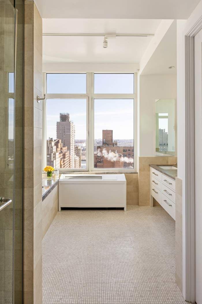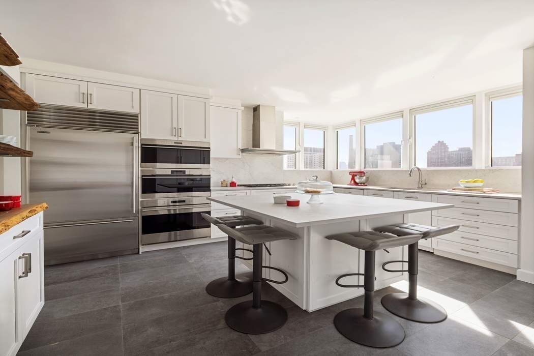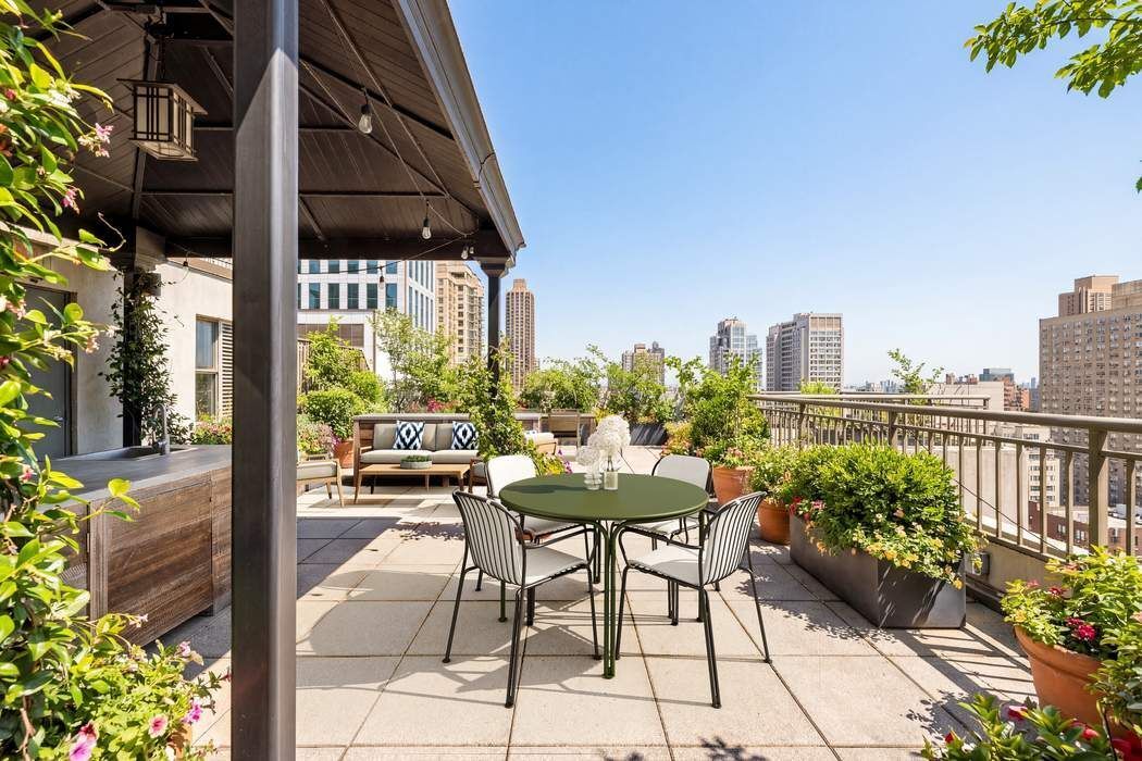 • Welcome home to this stunning light-filled sanctuary, a magnificent 3,562 square foot duplex penthouse with an additional 1,000 square foot private rooftop terrace ideally situated in the Arcadia, one of the Upper East Side's premier full-service condominiums. Defined by sundrenched and expansive interior spaces, soaring 12-foot ceilings, and dramatic skyline views to the north, south, and east, this sophisticated 5-bedroom, 5.5-bathroom home in the sky has been masterfully designed both for versatile everyday living and elegant entertaining. Enter from the semi-private elevator landing into the loft-like living and dining spaces bathed in extraordinary natural light through walls of showstopping floor-to-ceiling windows. The double corner living room with sweeping views and a stately gas fireplace allows for multiple seating arrangements and flows wonderfully into the large dining room with East River views. Adjacent to the dining room and connected through a wet bar/coffee station, the recently renovated kitchen is flooded with light all day long. Certain to delight the most discerning chef, the kitchen is fitted with custom cabinetry, stone countertops, a center island with seating for four, and premium appliances including Sub-Zero refrigerator and wine cooler, Miele dishwasher, three wall-mounted Wolf ovens (including a steam convection oven and microwave), and Wolf cooktop with vented hood. A south-facing library/media room with ensuite bathroom (which could easily function as a 5th bedroom) and a lovely powder room for guests complete the upper level. Perched above the penthouse is a spectacular private rooftop terrace, featuring breathtaking panoramic vistas to the north and east. With multiple seating and dining areas, irrigation, and an impressive outdoor kitchen with gas grill and three refrigerators, this urban oasis accommodates both intimate gatherings and grand entertaining for up to 100 guests. One flight down the striking architectural staircase are the private quarters, housing four sun-filled bedrooms and a laundry room with a large LG washer and vented dryer. The primary suite offers comfort and tranquility and is highlighted by floor-to-ceiling windows and a huge spa-like windowed corner bathroom with double vanities, oversized soaking tub, glass-enclosed shower, radiant-heated floors, and skyline views north and east. Each of the three additional generously scaled bedrooms boasts well-appointed ensuite bathrooms, two with bathtubs and one with a glass stall shower. Custom millwork, gorgeous wood floors, sound system, enviable custom closets and storage space, and multi-zoned central cooling and heating further distinguish this rare and special offering. Built in 2005 and designed by renowned architect Costas Kondylis, the Arcadia is an exclusive boutique condominium with only 48 residences and an impressive amenity suite. Recently renovated and reimagined, the building’s lobby, hallways and amenities have beautifully transformed. Residents enjoy a 24-hour doorman and concierge, library/entertainment suite with catering kitchen, fitness center, yoga studio, children's playroom, and bicycle storage. Easy access to all modes of transportation and moments from Carl Schurz Park, the East River Esplanade, Gracie Mansion, the finest museums, boutiques, and eateries. Pets under 75 pounds are welcome. Transfer fee is equal to 12 months of common charges. Taxes listed are for primary residents. Must be seen to fully appreciate!