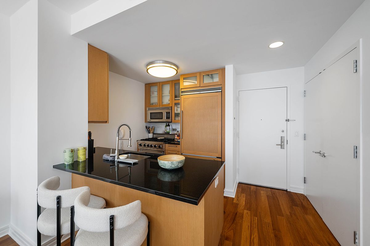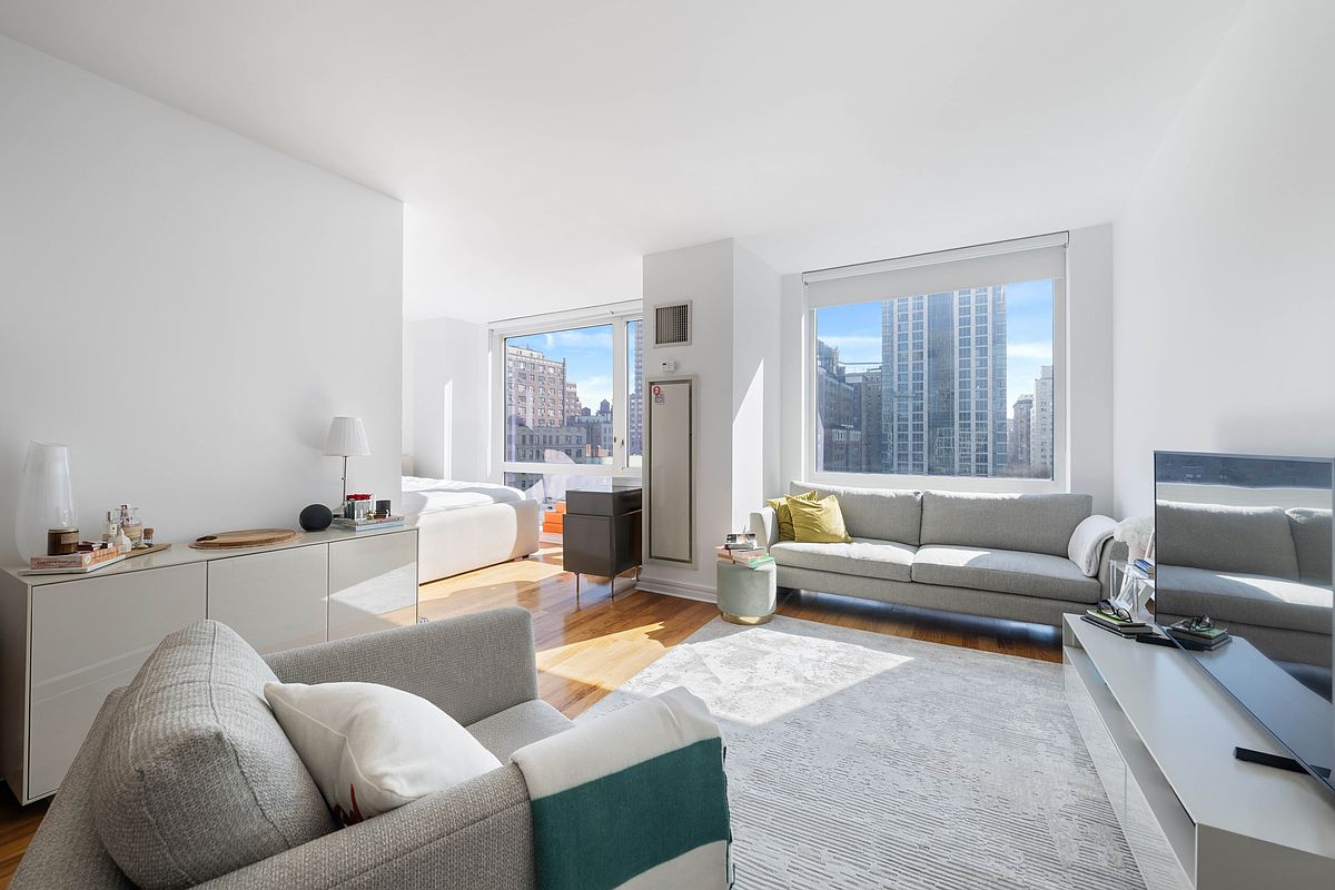 Come check out 11K one of the best K line units in the building, high floor, open views and tons of light, this amazing apartment features Viking appliances, Brazilian Hardwood floors, a large bathroom with in unit Washer and Dryer, Central Air and 2 large closets. This spacious studio alcove is perfect for a primary pied-a-terre or investment!