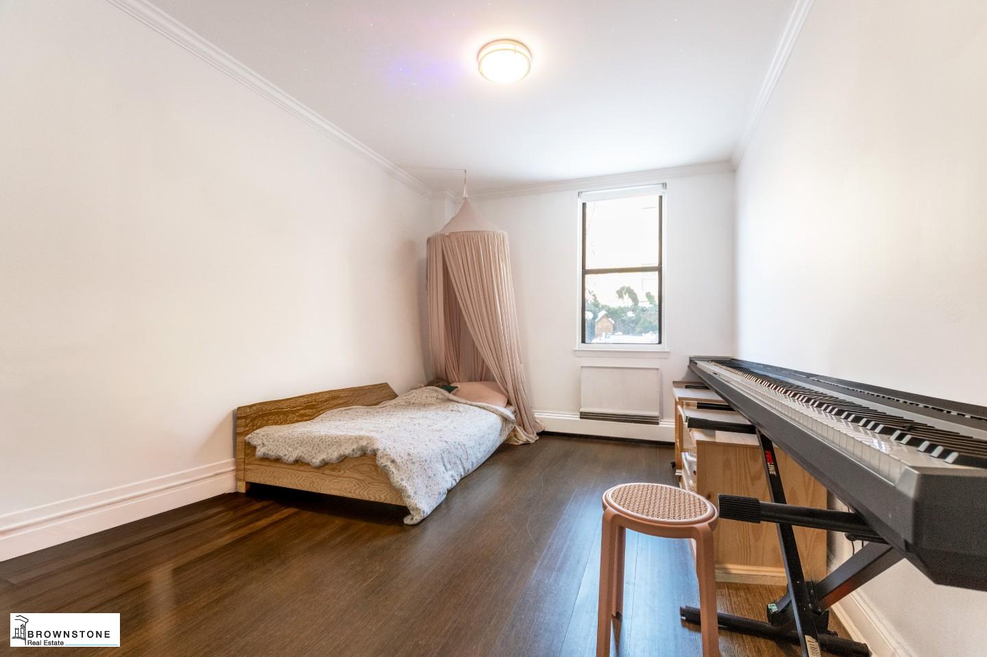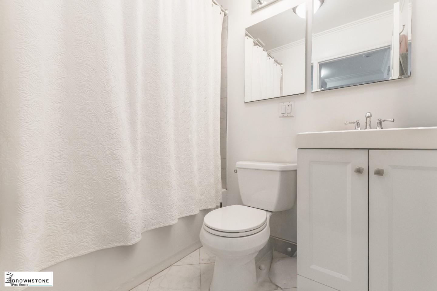 The two generously sized bedrooms have ample space large beds and built-in closets. The bathroom is freshly renovated.