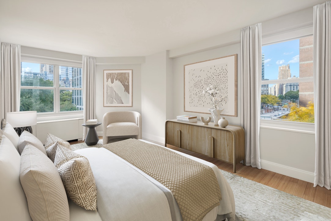 Enjoy west, north and east exposures from this high-floor oversized 2-bedroom home. Residences at 155 West 68th Street are designed with both style and comfort in mind featuring thoughtful oversized layouts supporting an elevated lifestyle. This 1,387 square foot residence features a suite of contemporary kitchen appliances and modern cabinetry, expansive windows offering abundant natural light, overhead lighting, and ample storage. Bathrooms include marble and porcelain finishes, complimented with stylish fixtures. Individual climate control is available in every residence for personalized comfort.