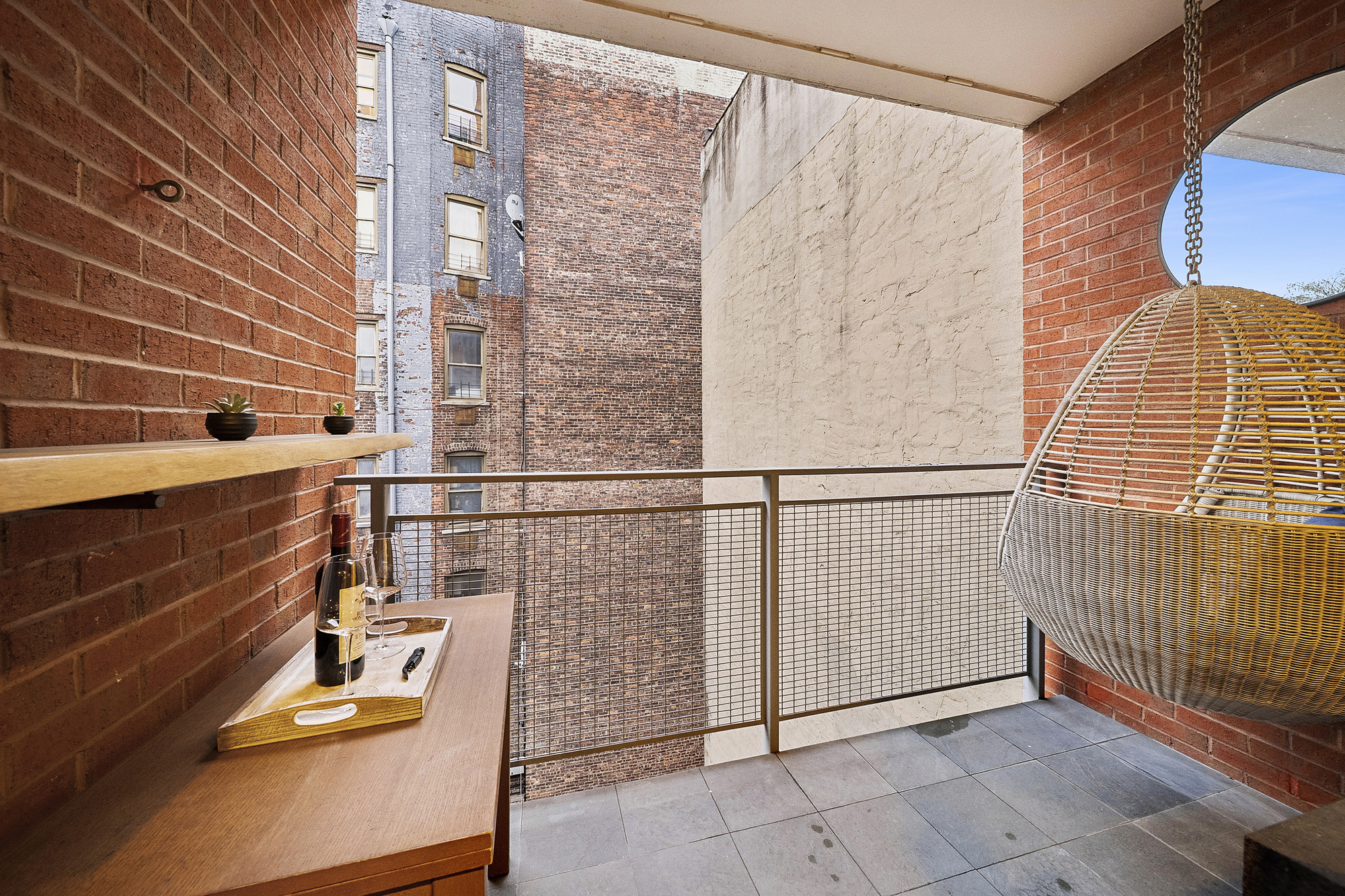 One of this unit’s standout touches is the private outdoor space off the living area — perfect for coffee in the morning or winding down in the evening with a glass of wine. While you won’t be flooded with giant AC bills in the summer from the light, you absolutely have enough light and room for potted plants to thrive, and a small bistro set. It’s rare to find that kind of extension to your living area in a boutique Manhattan condo.