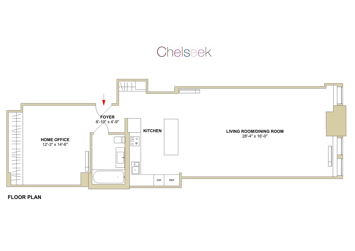 • Loft 7K faces east and is bathed in natural light through three oversized windows. The space feels open and ethereal, offering the perfect backdrop for a minimalist masterpiece or a more personalized and curated design. The ceiling is approximately 11-feet, adding to the loft's sense of spaciousness and volume. The open kitchen with island is ideal for both everyday living and entertaining guests. The bedroom features wall-to-wall closets, and there's an additional generous closet in the foyer for all your storage needs. Located in the iconic Chelsea Mercantile, one of Chelsea's most distinguished addresses, the building offers top-tier amenities including a fully equipped gym, on-site parking, private storage, a sprawling 10,000-square-foot roof deck, and a full-service, attentive staff.