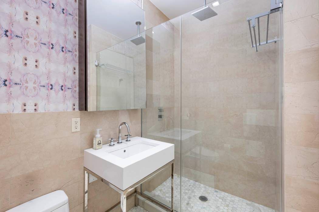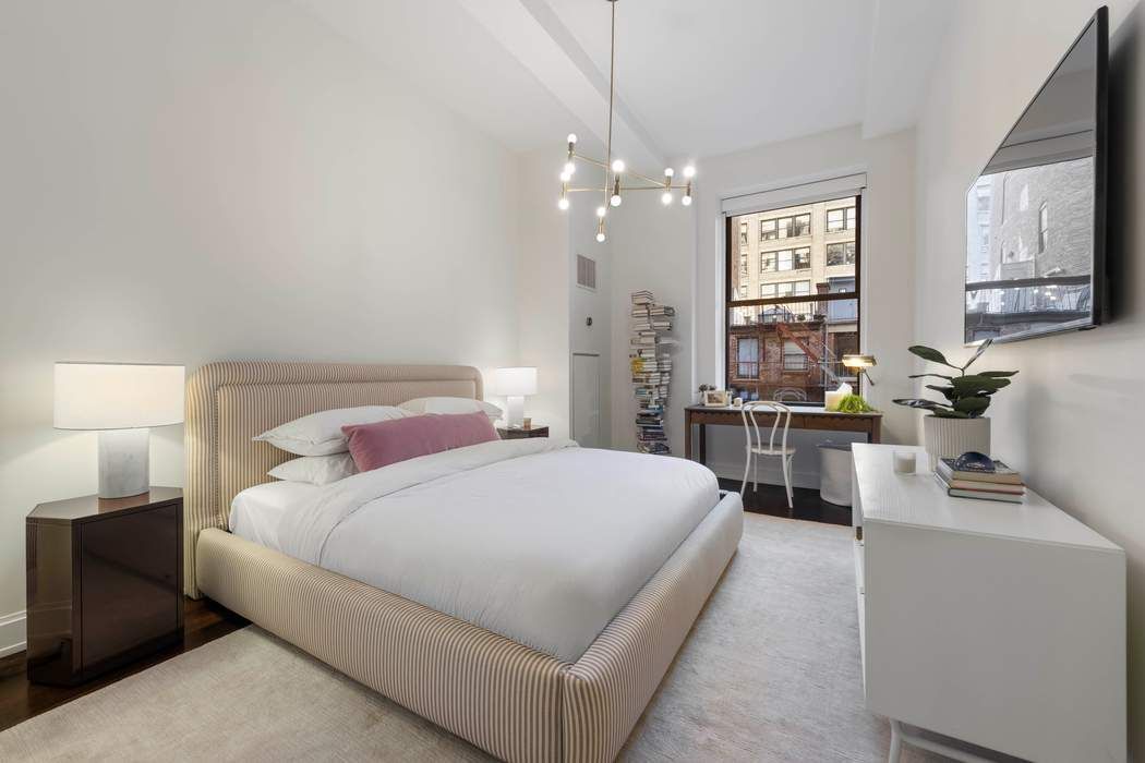 Classic architecture. Modern luxury. Boutique scale. Welcome home to residence 4F at the Clement Clarke. This coveted F-line home is in impeccable condition, thoughtfully finished with designer touches throughout that elevate every room. Set within a beautifully restored full-service building, this sophisticated residence combines historic character with contemporary design. Soaring 10–11' beamed ceilings, oversized double-hung windows, and rich 5" solid American walnut plank flooring create a dramatic yet warm living environment filled with natural light. The open chef’s kitchen is elegantly appointed with quartz countertops and backsplash, custom Alta Cucina cabinetry, and a premium appliance suite including Miele cooktop and oven, Sub-Zero refrigeration, dishwasher, and Bosch washer/dryer. The spa-caliber bath features Greek Chios brown marble stone sinks, fumed oak vanities, imported limestone floors and walls, and a deep soaking tub by WET—offering a serene retreat from city life. With just 51 residences across 12 floors, the building offers a rare sense of privacy and boutique scale. Residents enjoy a 24-hour doorman, full-time superintendent and porter, landscaped roof deck, central air with individual room controls, and available basement storage. A refined downtown home designed for those who appreciate timeless architecture, thoughtful design, and understated luxury. *Represents current apartment configuration, which may not conform to official legal documentation. Purchasers should consult with their legal or architectural professionals to determine legal use parameters.