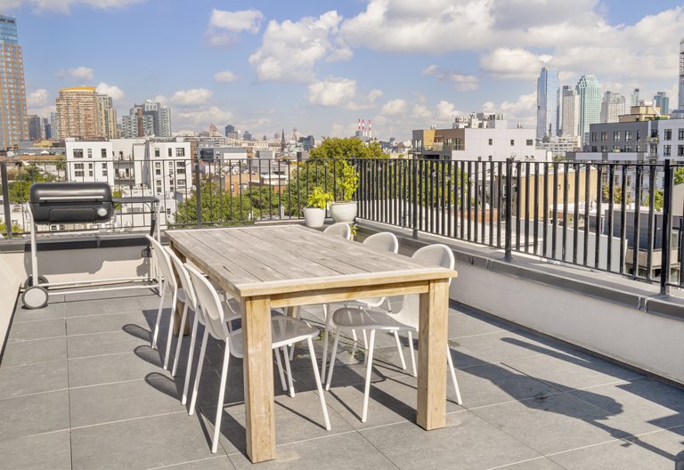 The residence offers private keyed elevator access and direct access to a spacious private rooftop terraceperfect for entertaining or relaxing above the city. Additional conveniences include motorized shades and an in-unit washer and dryer.
