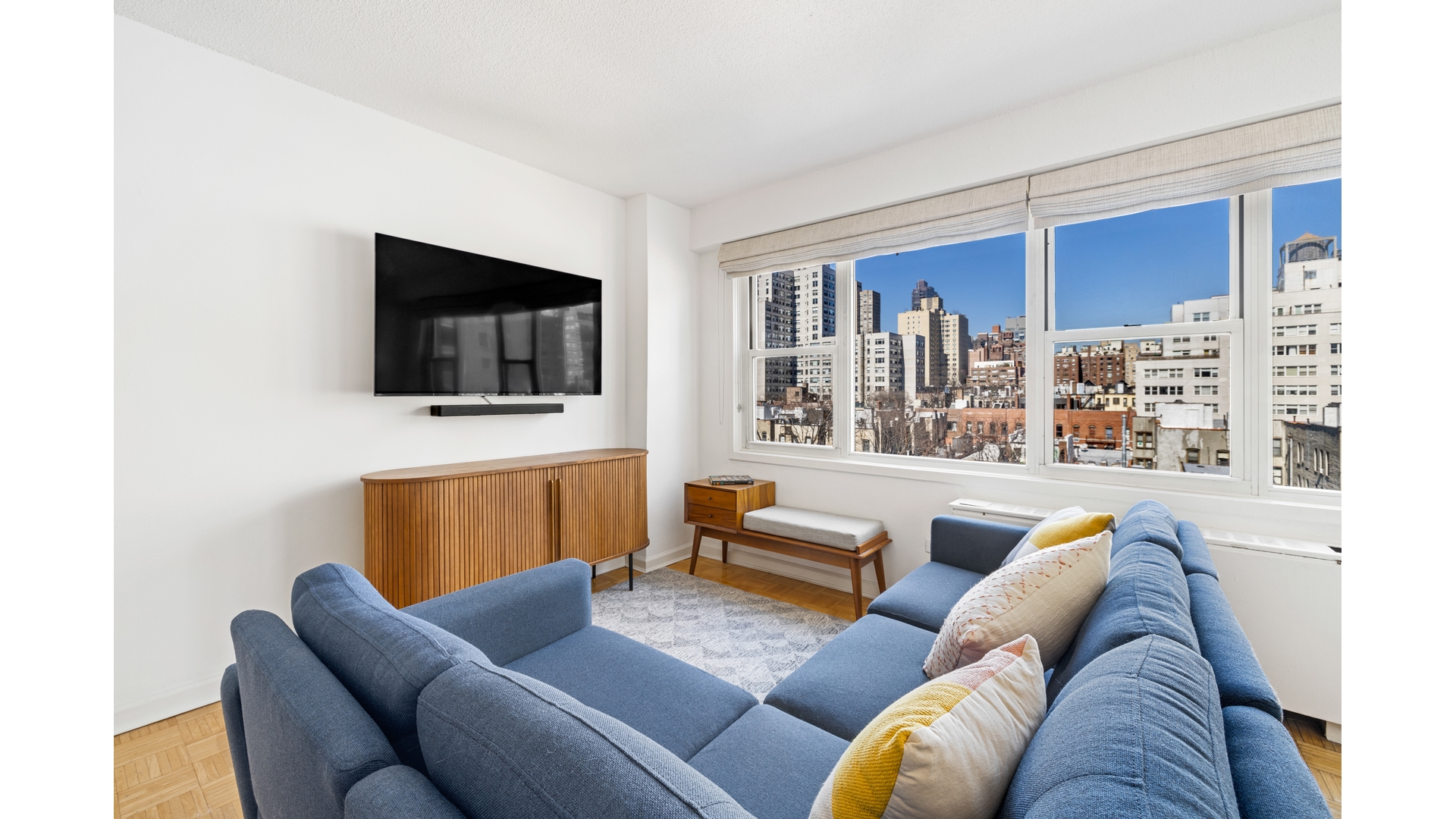 Perched on a high floor, 10E invites you to a move-in-ready home in a full service condominium. This spacious alcove / junior-one boasts open views with wall-to-wall windows, renovated kitchen & bath, generous closets in the foyer, a dressing room with built in shelving system, gracious size living and sleeping areas, and well maintained oak wood floors.