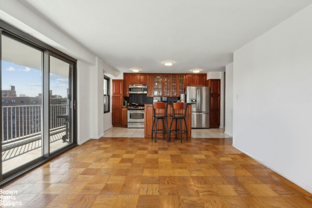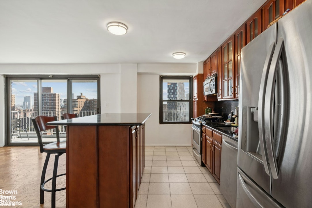 This spacious one bedroom features a full length terrace, sun drenched southwestern exposure, and dramatic views! The kitchen has been opened fully to the living room creating an expansive great room with a wall of windows including large glass sliding doors opening to your own private outdoor space. The bedroom is very nicely proportioned and can easily accommodate a king size bed, as well as other furnishings