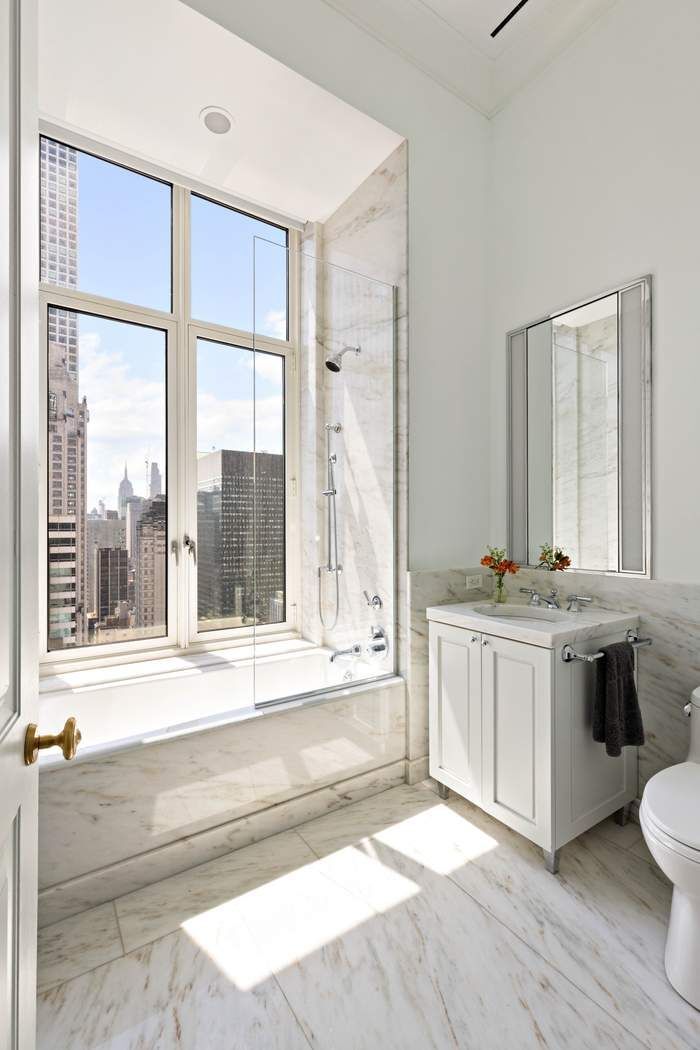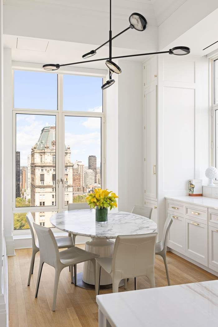 Welcome to the pinnacle of luxury living at Penthouse 48, an extraordinary full floor residence spanning 4,628 square feet with show-stopping 360-degree views of Central Park and New York City’s iconic skyline. Ideally situated in the Upper East Side’s most distinguished address, an exceptional limestone-clad condominium crafted by world-renowned architect Robert A.M. Stern, this magnificent sundrenched 48th floor masterpiece is one of the highest positioned simplexes and one of the few with soaring 15-foot ceilings at 520 Park Avenue. Enter from your private key-locked elevator landing through stately double doors into an impressive gallery from which all interconnected entertaining spaces graciously flow. Experience the magic of New York City from sunrise to sunset from the grand corner living room, featuring breathtaking views of Central Park, the Madison Historic District, and the East River through walls of expansive windows. Separated by oversized pocket doors, the living room opens into the spacious formal dining room (currently utilized as a second living room) with more sweeping views. Adjacent to the living room is an intimate media room/library which could easily function as a 4th bedroom with its gorgeous ensuite marble bathroom. The spectacular windowed eat-in-kitchen overlooking Central Park is outfitted in custom Christopher Peacock cabinetry and hand painted cabinets with hand-blown glass. The best-in-class appliance package boasts a Subzero refrigerator with two freezer drawers, two additional separate refrigeration drawers, a six-burner plus skillet Wolf range with vented hood, two Miele dishwashers, multiple Wolf wall ovens, built-in below-cabinet Wolf microwave, and a full-height Sub Zero wine refrigerator. Enjoy your morning coffee from the beautiful island cloaked in marble or in the breakfast nook with mesmerizing views west through floor-to-ceiling windows. The luxurious corner primary bedroom suite boasts sunlit south and east exposures with incredible views of the Empire State and Chrysler Buildings, four closets, two of which are custom-outfitted walk-in-closets, and a spa-like windowed bathroom with Victoria Albert free-standing bathtub, separate steam shower, radiant heated floors, stunning marble slabs and fixtures, and a custom-designed double vanity. A second private bedroom corridor separates the second- and third-bedroom suites from the public rooms and contains the in-unit laundry, featuring an Electrolux washer and vented dryer. Both bedrooms enjoy natural light pouring through southern and western windows, an abundance of closet space, and ensuite marble bathrooms, one with a tub and the other with a glass stall shower. Additional notable features of this elegant oasis in the sky include a full guest bathroom off the entrance gallery, select-cut solid white oak hardwood flooring in classic herringbone and overlay patterns, custom crown molding, and multi-zone central air conditioning and heating with precise temperature control in every room. There is also a storage unit that will transfer with the sale. With only 35 residences, 520 Park Avenue offers white-glove service and an unmatched suite of amenities including a full-time doorman and concierge, a magnificent lobby, beautifully landscaped garden, a spectacular two-story fully-equipped fitness center with private training rooms and a pilates studio, double height 25-meter indoor swimming pool, a serene spa retreat complete with sauna, steam rooms, and private treatment suites, multiple dining and entertaining spaces including a grand salon, library, and screening room, private office/work spaces, wine cellar, cold storage, and bike storage. Ideally nestled among prominent museums, luxury boutiques, charming cafes, and the world’s finest restaurants, 520 Park Avenue offers prestigious living and historic neighborhood charm right on your doorstep.