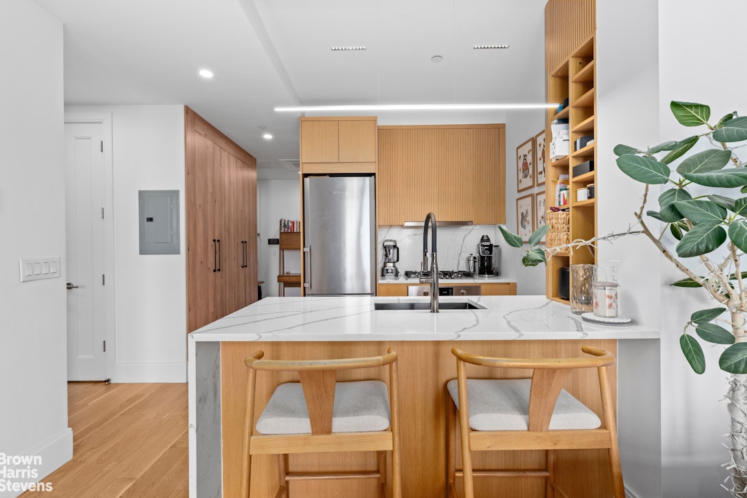 Deeded storage. In-unit washer/dryer. Wide-plank oak floors. High ceilings. Custom built-ins throughout.