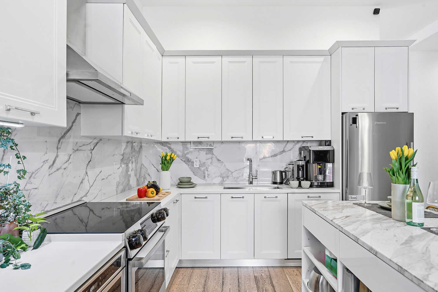 Residence 1B offers approximately 855 square feet of landscaped backyard plus a 140+ -square-foot lower patio-an exceptional amount of personal outdoor space in Williamsburg. Outfitted with a built-in grilling station and multiple areas for dining and lounging, the backyard feels like a private urban oasis with room for further customization.