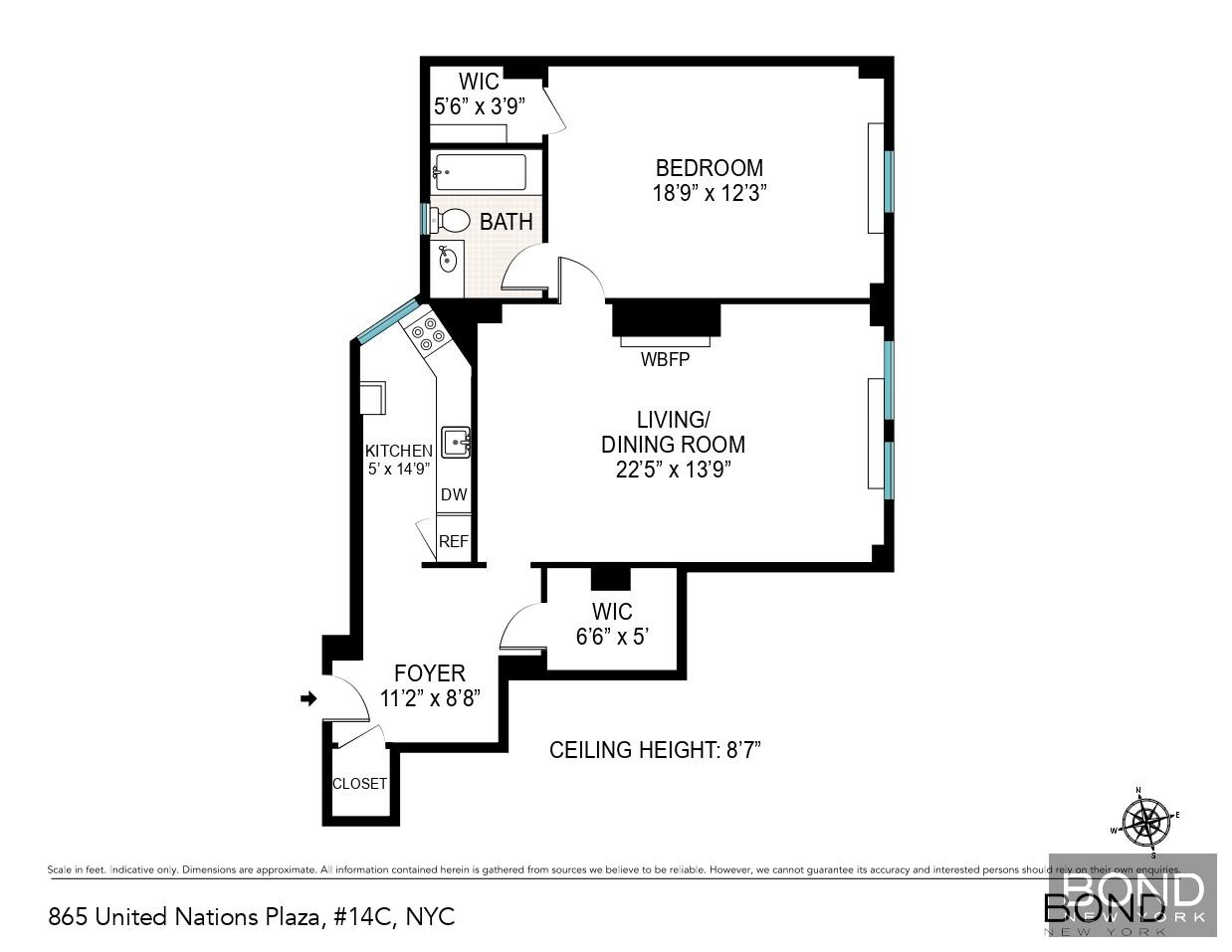 • Exceptional one-bedroom, one-bath condominium at 865 UN Plaza.