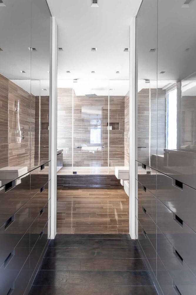 An immaculate, modern open kitchen-also with direct park views-showcases the finest in European design.