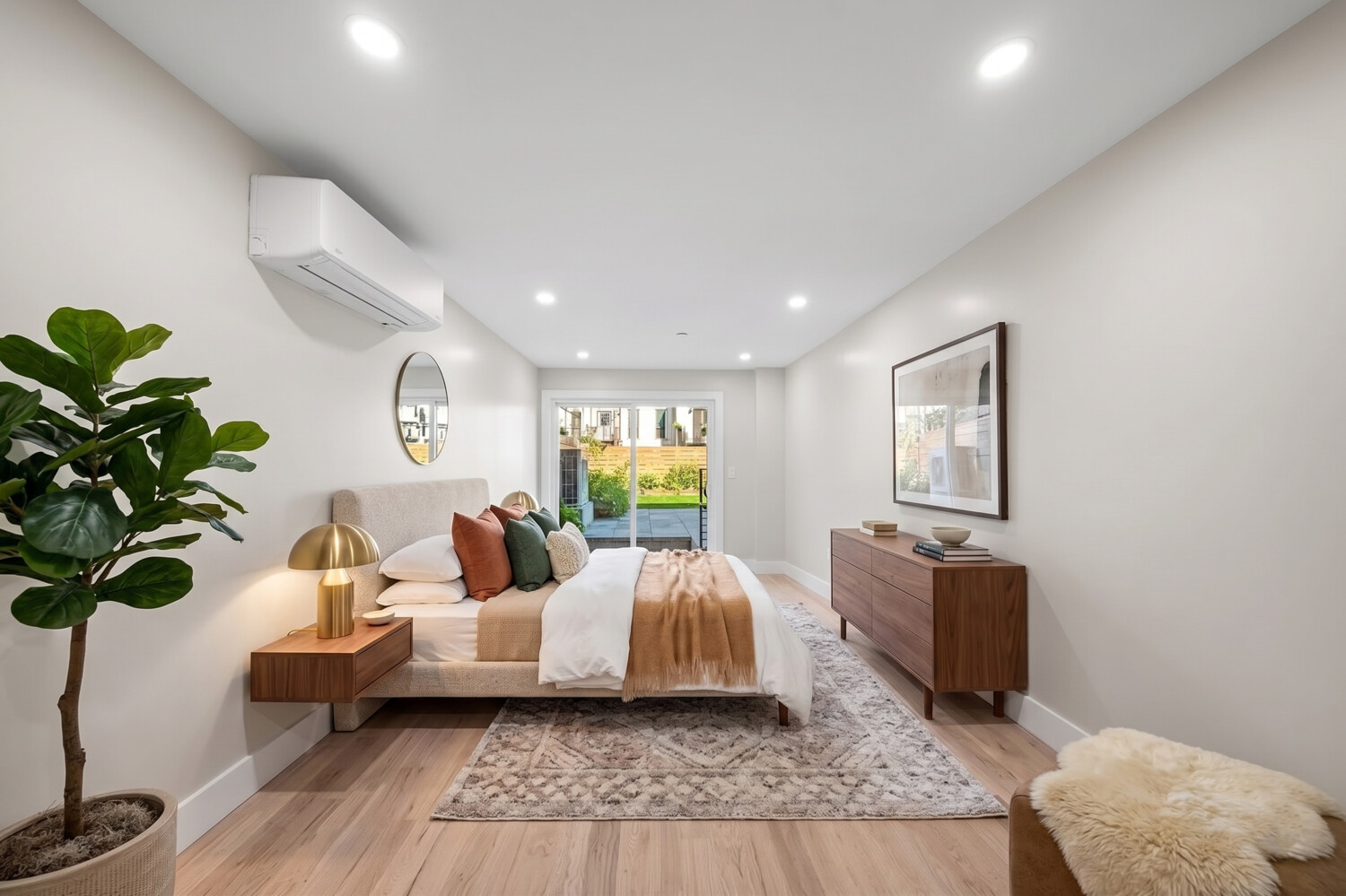 The garden unit features a well-designed layout with an open kitchen and living area at the front, equipped with stainless steel appliances and convenient counter seating. Two bedrooms at the rear offer direct access to the backyard, creating a seamless indoor-outdoor living experience, with the option to create a third bedroom. With two full bathrooms and access to the cellar for additional space and entertainment.