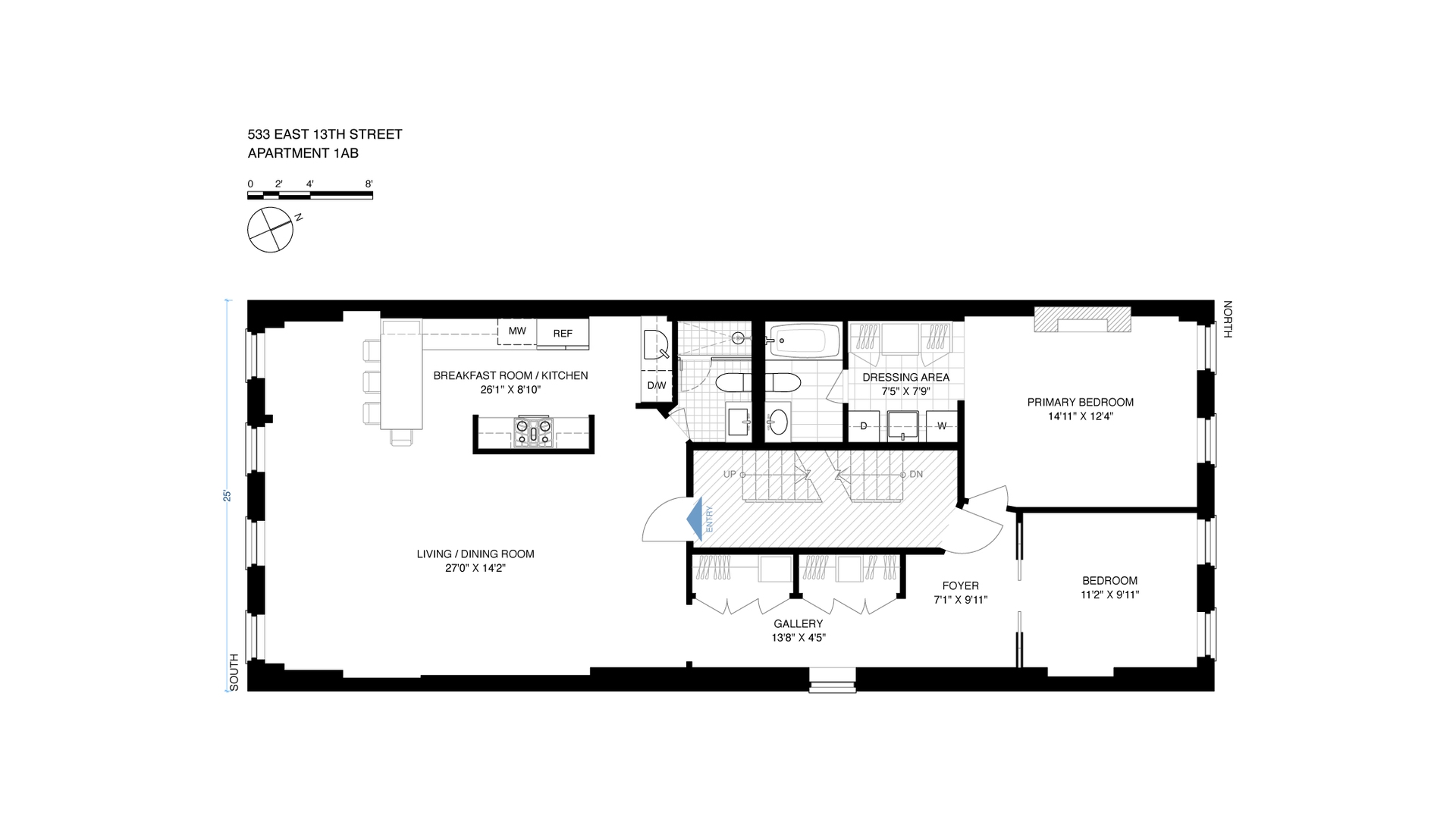 Presenting the perfectly located full floor residence on the second floor at 533 East 13th Street, in the beautiful, vibrant, East Village. This stunning, spacious prewar 2-bedroom 2 bathroom co-op features high ceilings, oversized windows, and new hard-wood flooring, just one flight above a gorgeous tree-lined, serene streetscape. The bright and airy floor-through layout, offers pretty neighborhood views to the south from the living room and eat-in-kitchen, and quiet courtyard views to the north from both bedrooms. The inviting kitchen with stainless steel appliances, granite countertops with great cabinet storage is ideal for cooking and entertaining. The light-filled living room with unique details of exposed brick is relaxing and intimate. The dining area seamlessly flows to the kitchen and opens onto the living room allowing for easily interacting with family and friends. A closet lined corridor leads to the two bedrooms which are privately tucked away in the northern wing of the apartment. The sumptuous primary bedroom with its large windows has an ensuite bathroom and conveniently positioned washer-dryer area. This lovely home, comes with a much desired storage unit, which is in the lower level of the building.