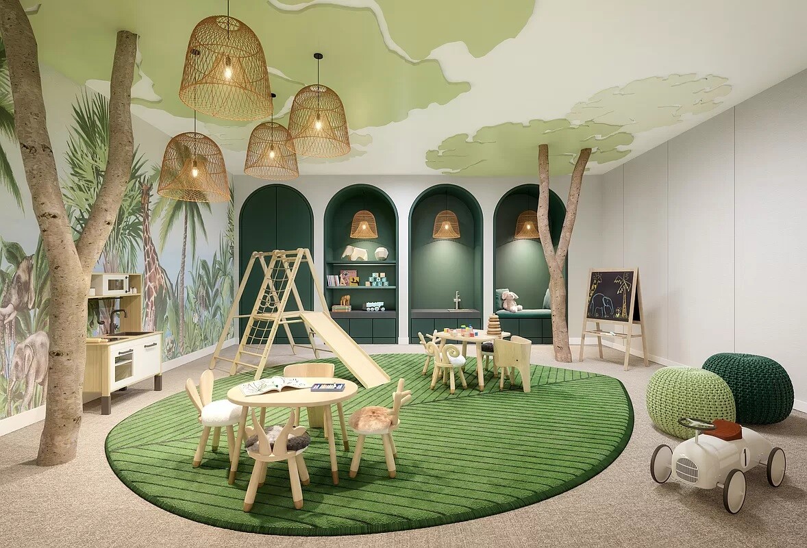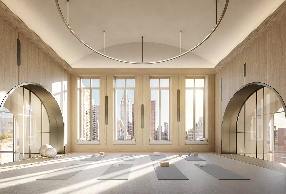 The tower's amenities include a seventy-foot swimming pool, a fitness center, yoga room, spa with steam bath and sauna, and a Winter Garden with a charming fireplace and dramatic loggia. At ground level, beyond the gates of the porte-coch re, is a concealed automated parking system with views of a landscaped private garden. An adjacent library and private cinema emphasize a dedication to fine materials and uncompromising attention to detail. A children's playroom and teen hangout room complete the amenities. The lobby is attended 24 hours a day with doorman and concierge service.