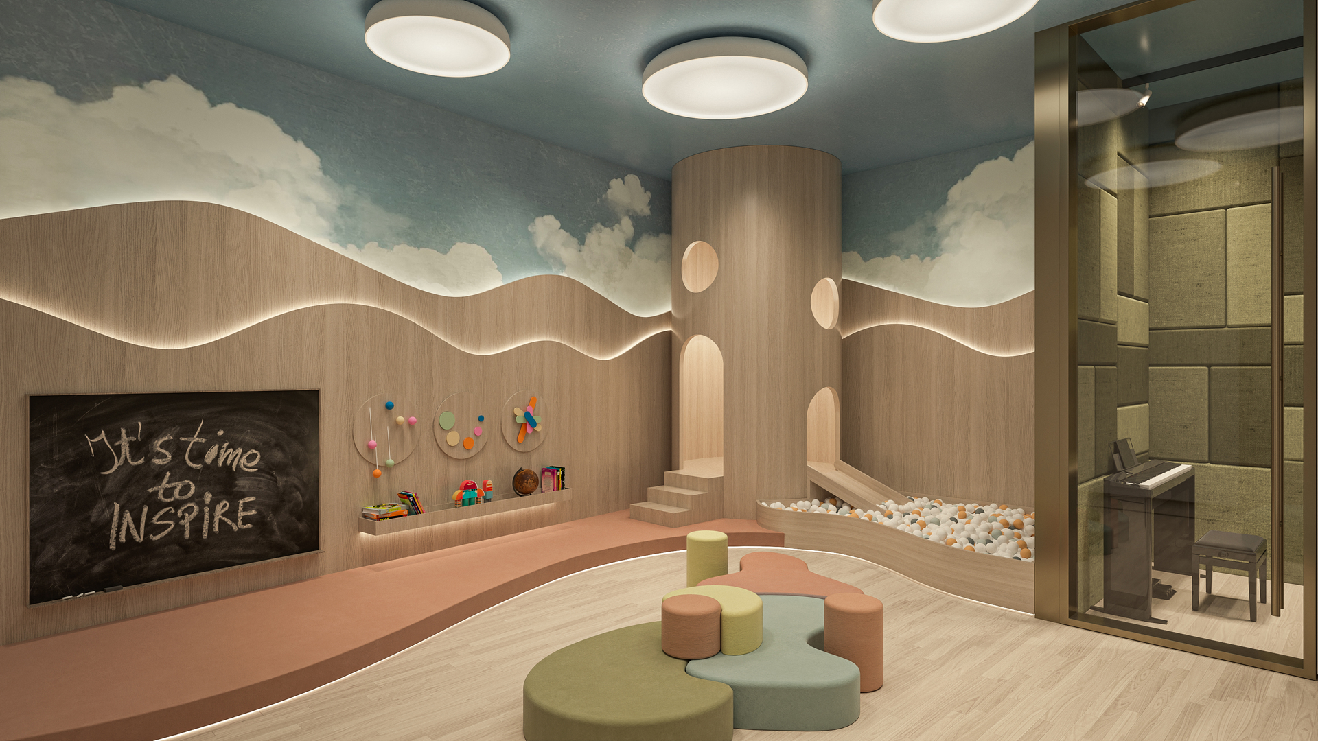 The Austin offers a refined collection of resort-style amenities designed to enhance everyday living. Residents are welcomed by a full-time doorman and concierge, with inviting spaces including a residents' lounge with garden views, a residents' library, and a vibrant children's playroom and music room. The state-of-the-art fitness center features cardio and strength equipment, a stretching studio, spa, and indoor basketball court. Two fully amenitized rooftop levels include an outdoor saltwater junior Olympic pool, pickleball court, outdoor cinema, and outdoor kitchen and dining areas with panoramic views of Manhattan and Queens. Additional conveniences include a live-in superintendent, pet spa, as well as private parking and private storage available for purchase.