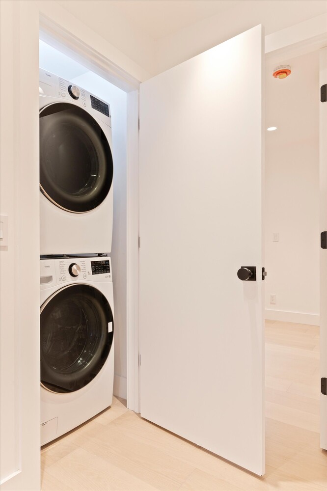 Third Floor: 3-bedroom, 2-bath layout with gas kitchen, in-unit washer/dryer, and a private balcony, providing additional outdoor living space and light.
