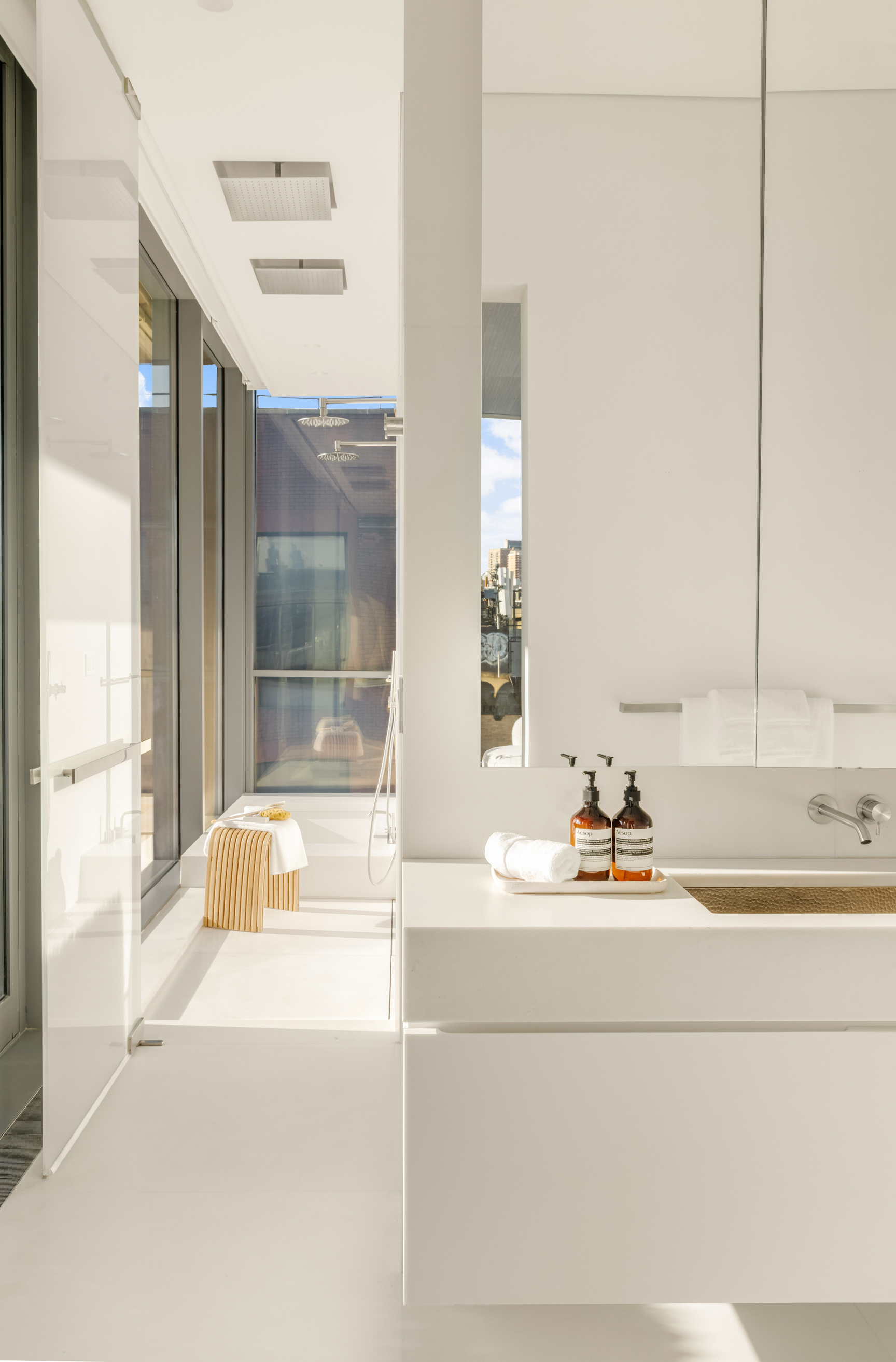 Masterful design and modern luxury are exquisitely embodied at the 4 bedroom, 4.5 bathroom Penthouse with interiors designed by Gabellini Sheppard. Spanning approximately 5,603 interior square feet across two levels and approximately 3,240 square feet of exterior space, it also includes two on-site automated-valet parking spots, an unheard-of luxury in Manhattan.