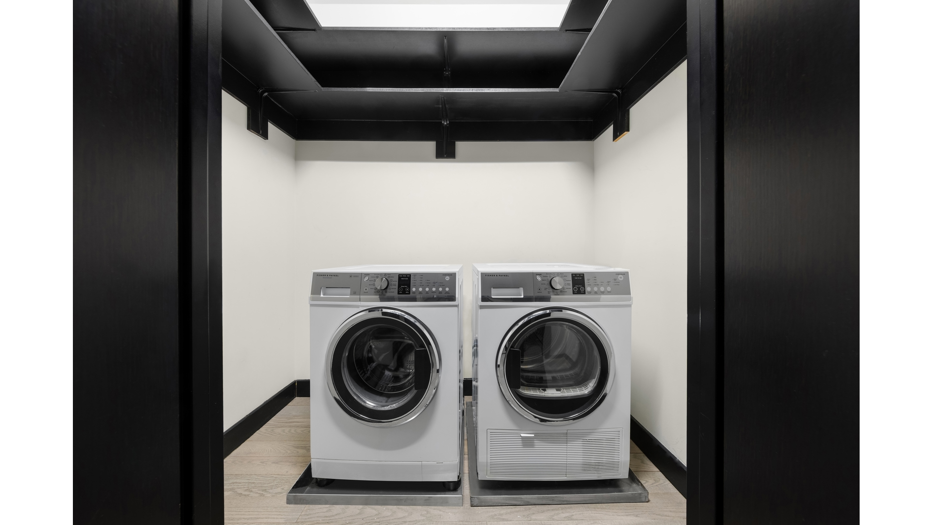The ultra-chic kitchen with sophisticated finishing is fully outfitted with a Sub-Zero fridge neatly built into the cabinetry, Miele range stove-oven, Fisher & Paykel dishwasher and stackable Miele washer-dryer. Adjoining the main room, there is a grand Walk-In-Closet; the signature spa-like Bathroom is built from grey galaxy granite and quartz stone and presents a recessed rain shower.