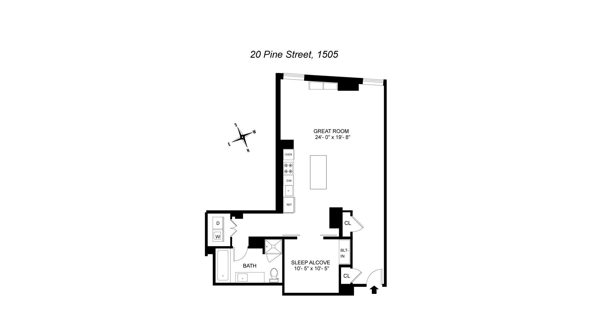 This rarely available, 1,100 SQ FT loft is one of the most sought after layouts at 20 Pine Street - The Collection.