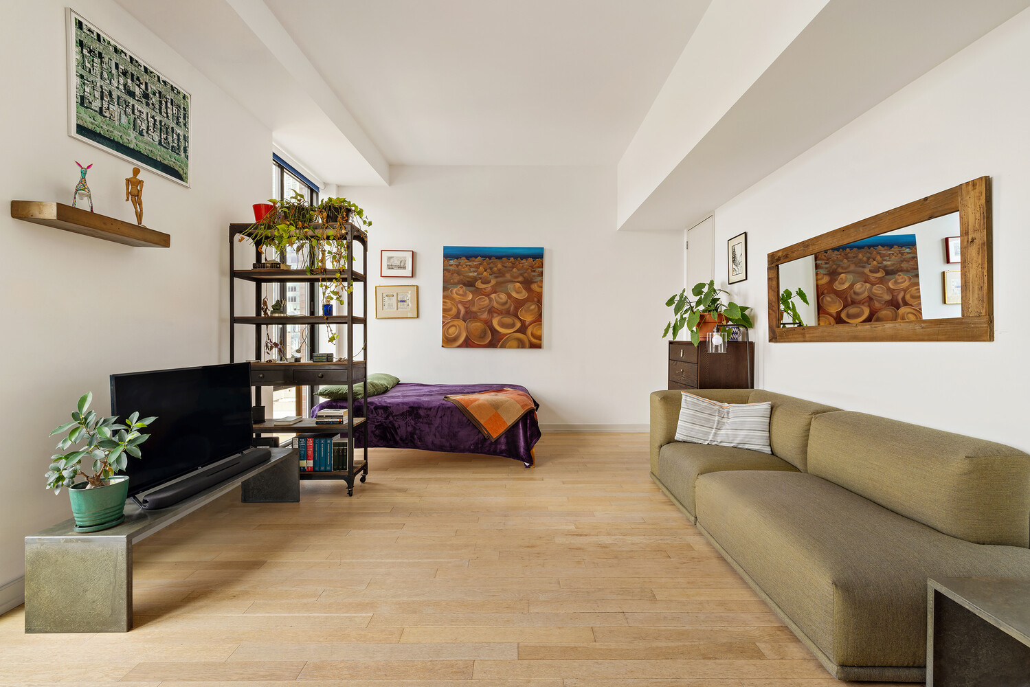 Perched atop The Industry as Penthouse A, this sun-drenched studio - easily convertible to a junior one-bedroom - makes an immediate impression with soaring 10.5-foot ceilings and a sweeping wall of windows that floods every corner with natural light. At 562 square feet, the open loft floor plan is thoughtfully designed to maximize both space and flexibility, opening directly onto a 60 square foot private balcony with unobstructed north views of Long Island City and westward vistas stretching across the Manhattan skyline. The sleek open kitchen is appointed with a full-size SubZero refrigerator, high-end stainless steel appliances, custom cabinetry, and elegant Caesarstone countertops with a glass subway tile backsplash - while the designer bathroom answers with floor-to-ceiling tile, and a deep soaking tub. Oak hardwood floors run throughout and an in-unit ventless washer / dryer completes the picture. A separately deeded storage cage is available for purchase.