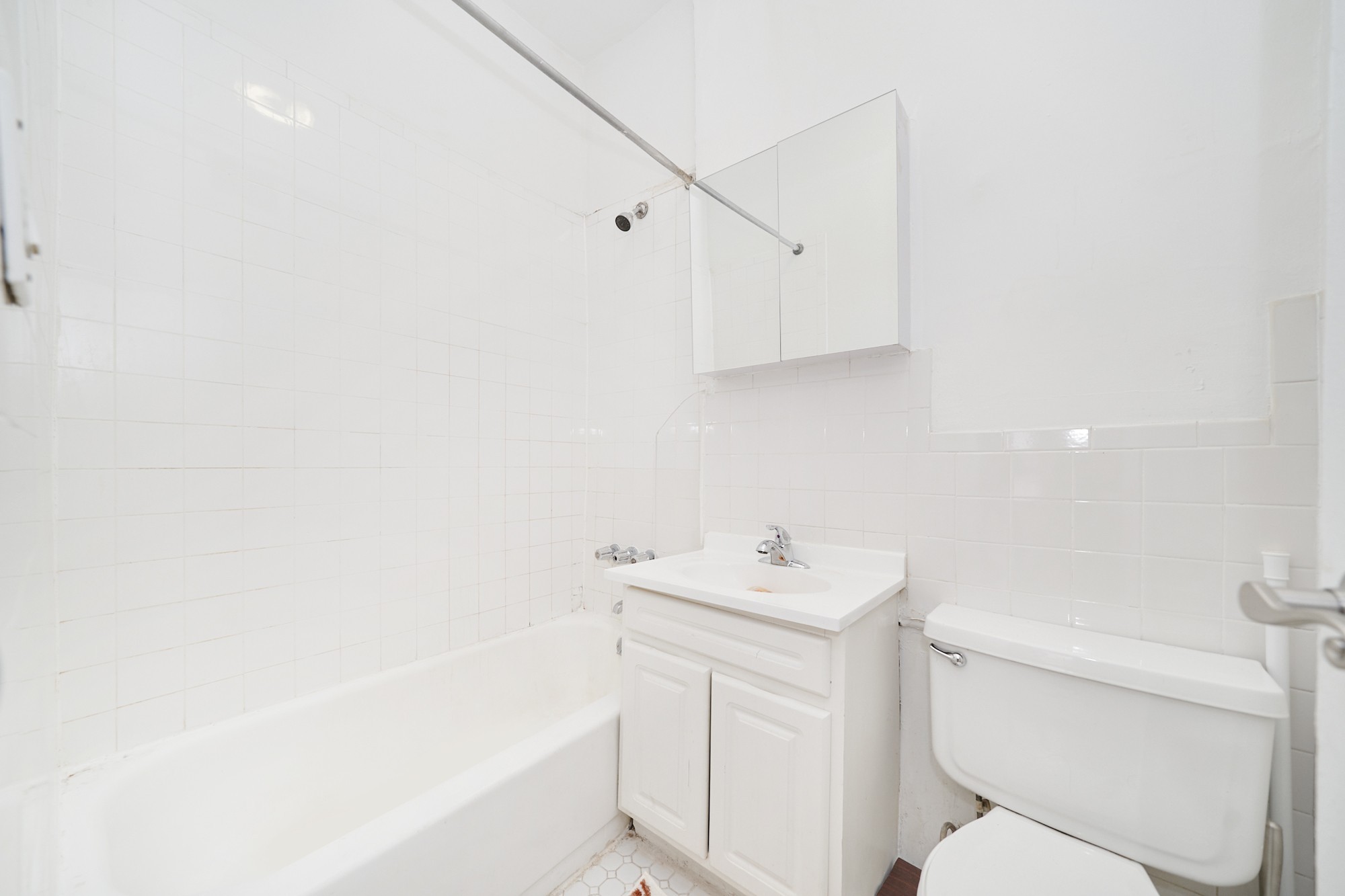 Tiled bathroom with tub/shower