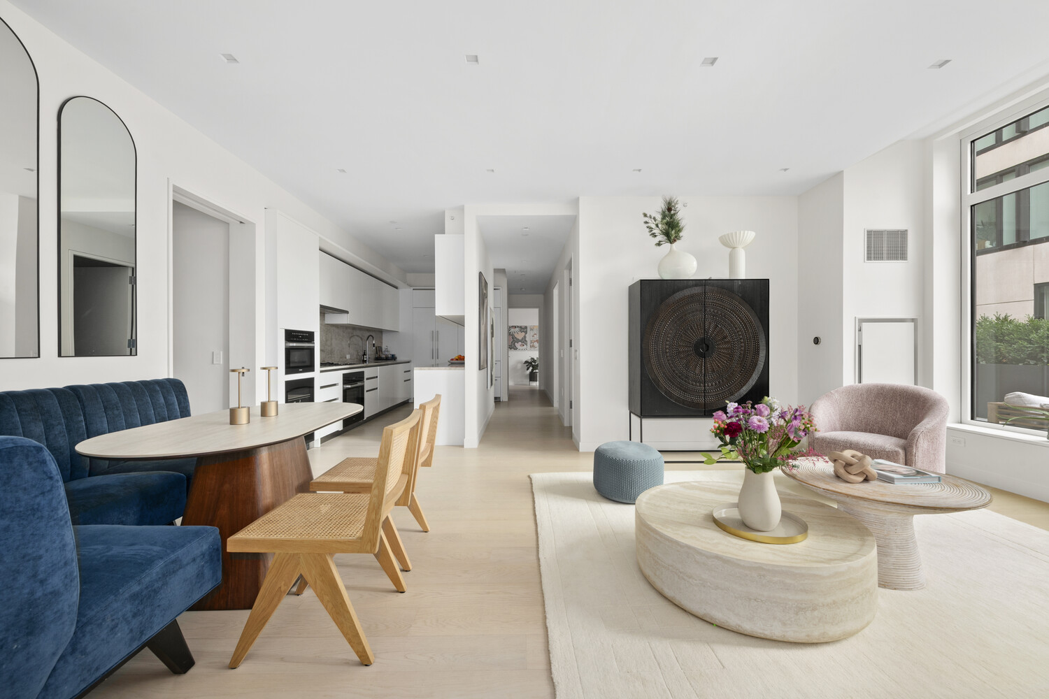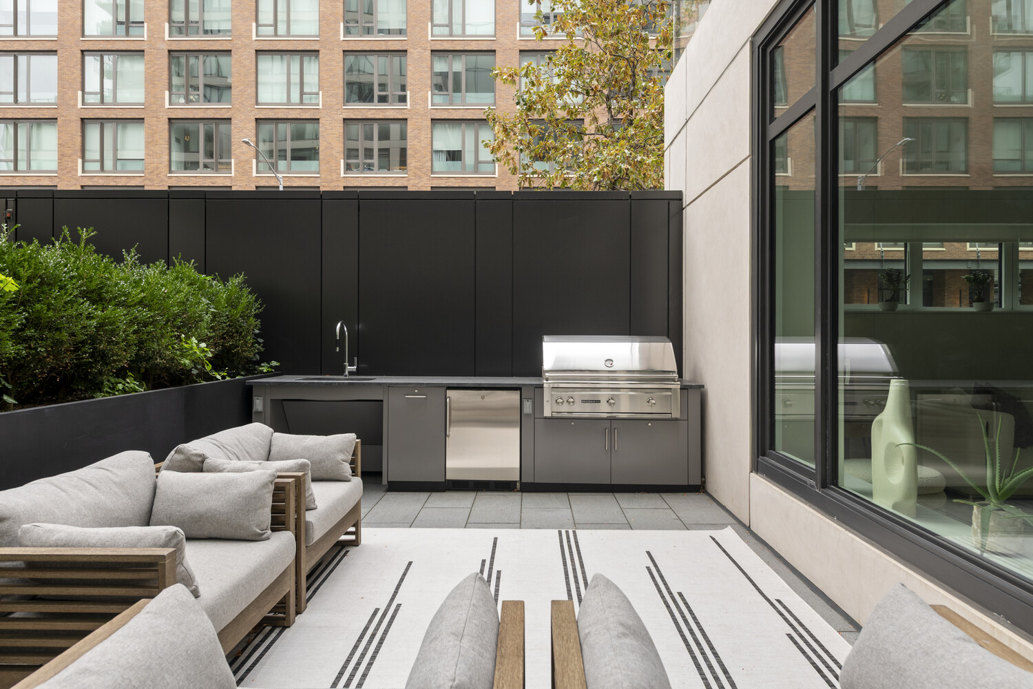 A nearly 700-square-foot private terrace serves as a true extension of the home-an exceptionally rare offering in Tribeca-with multiple zones for dining, lounging, and entertaining, as well as a full outdoor kitchen for elevated alfresco living.